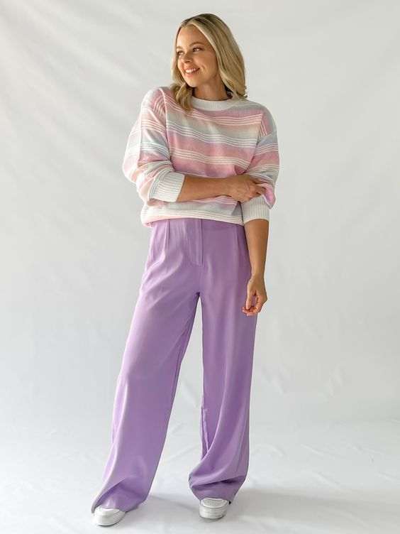 Soft, easy-on-the-eyes colors like lavender (light purple), mint (cool green), and peach (pinkish-orange) are becoming pretty popular. They're calming to look at, and you'll feel pleasant wearing them. Try wearing an outfit in these colors with accessories in simple, neutral tones. But remember, don't go overboard – a hint of pastel in your outfit is enough to make you look stylish.
