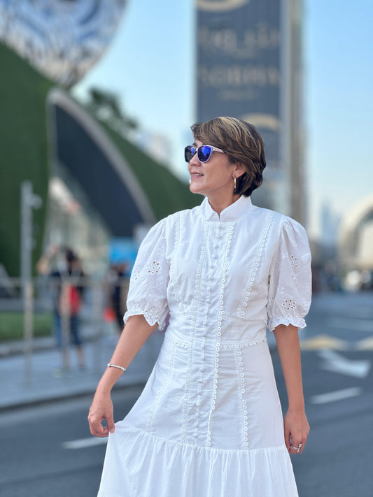 This dress is so versatile - I can dress it up with heels and statement jewelry for a fancy occasion, or dress it down with sneakers and a denim jacket for a casual day out. And the waist tie-up is a godsend for when I want to switch up my silhouette!