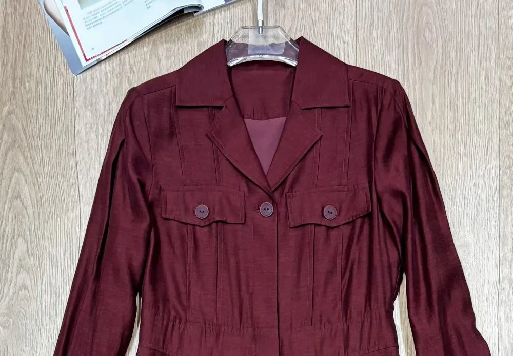 Bring a refined sensibility to your autumn wardrobe with this sophisticated maxi-length dress, a key piece for elevated high street style. Crafted from a comfortable woven cotton-polyester blend, the fabric maintains a smooth, anti-wrinkle drape in a graceful A-line silhouette. It features a classic turn-down collar and elegant full-length sleeves, while an empire waist is defined by a subtle sash and finished with delicate appliqués, lending a simple, chic focus.