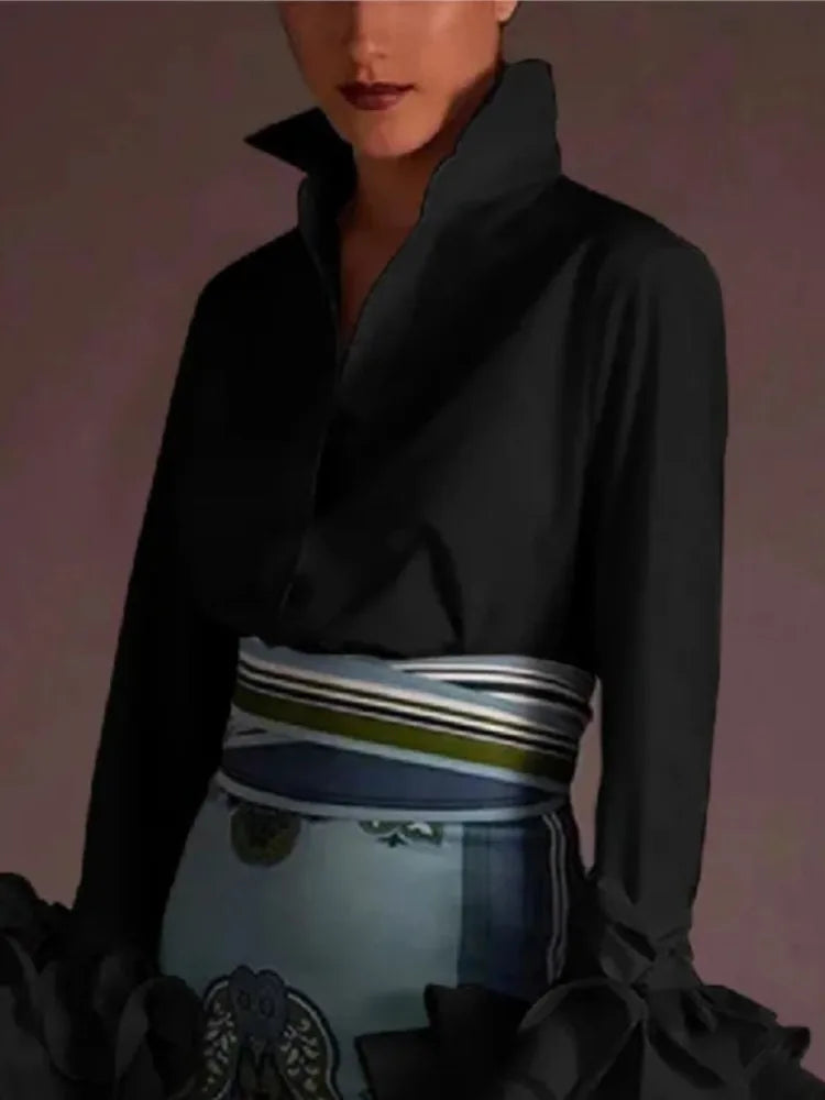 Bauble Buy’s Anthea Top redefines modern femininity with its crisp tailoring and dramatic flair. Designed with a sharp collared neckline and statement ruffled cuffs, it balances structure with playful movement. A versatile piece that instantly elevates any ensemble, it works beautifully for both polished day looks and sophisticated evenings.