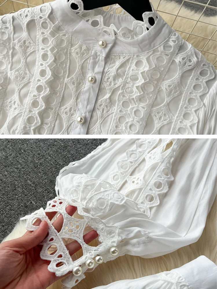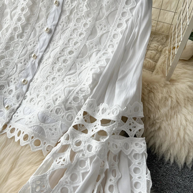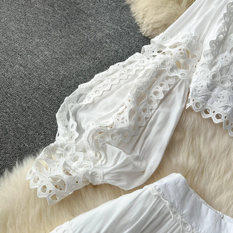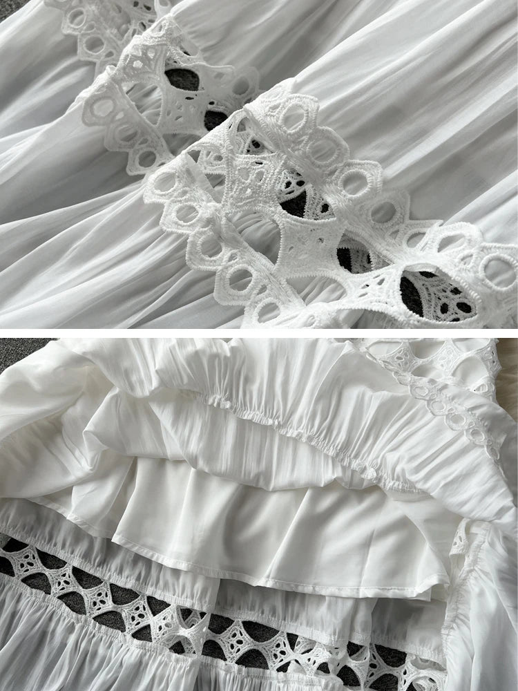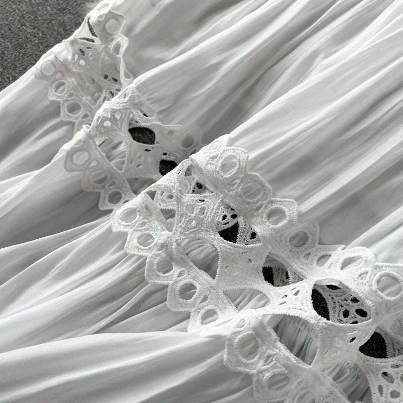 Bauble's 'Dawn' maxi skirt is decorated with laces and embroidery inspired by "the irreverent beauty of original Gaucho girls." It's been made from crispy white fabric and has a voluminous A-line silhouette enhanced by soft pleats. Style yours with the matching top.