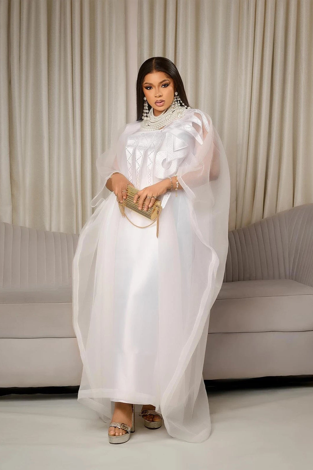 Bauble’s Edna dress is designed to captivate with its ethereal elegance and sculptural detail. Crafted from lustrous satin and layered with sheer organza, it features a dramatic silhouette that moves with graceful fluidity. The gathered bodice and voluminous sleeves frame the neckline beautifully, making it perfect for black-tie events or modern soirées. Style with statement jewelry and metallic heels for a truly head-turning ensemble.