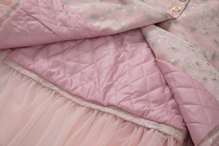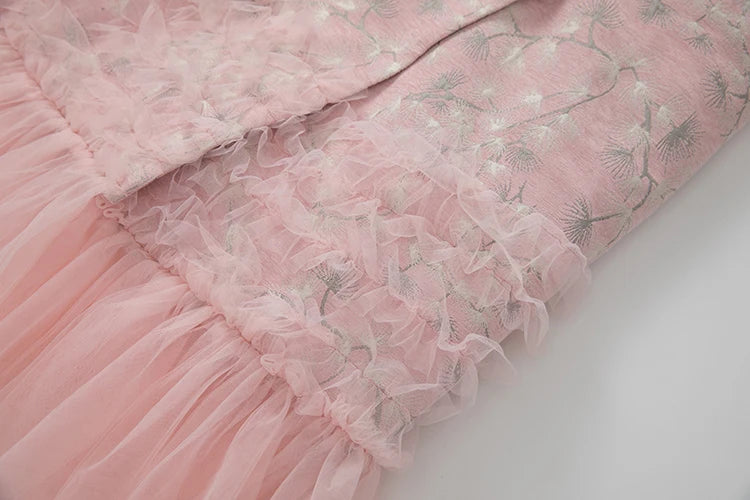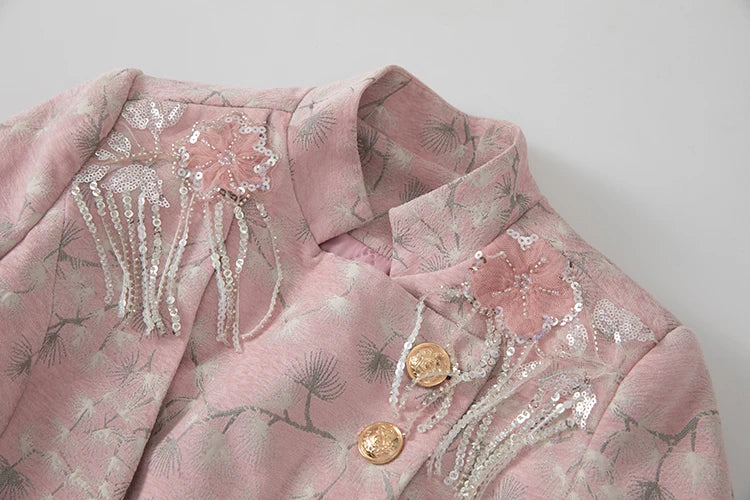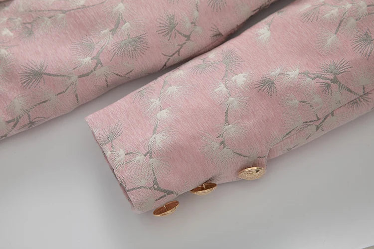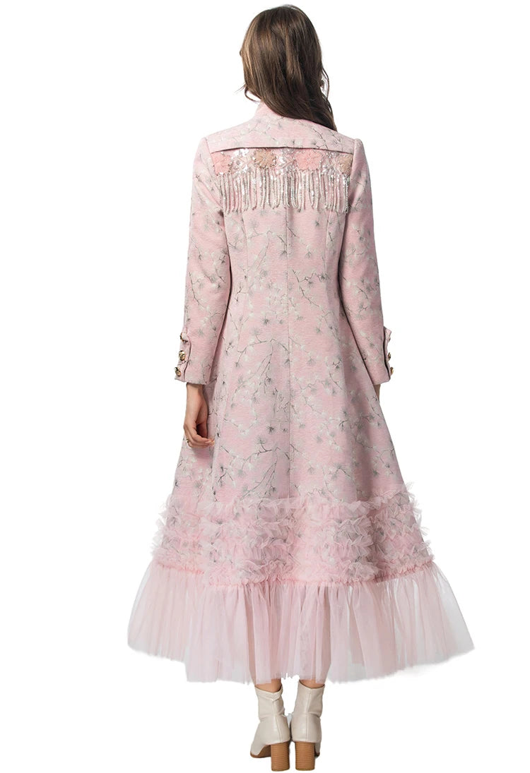 Bauble's 'Georgia' Coat is a refined trench that merges classic structure with romantic detail. Tailored in a slim and sleek silhouette, it features ruffled accents and a delicate floral pattern. The full-length design, long sleeves, and buttoned-up front make it an elegant outer layer for formal evenings and elevated daywear.