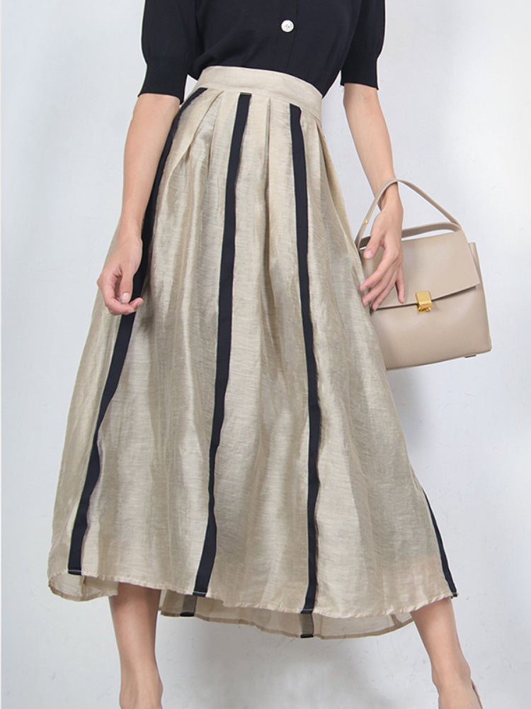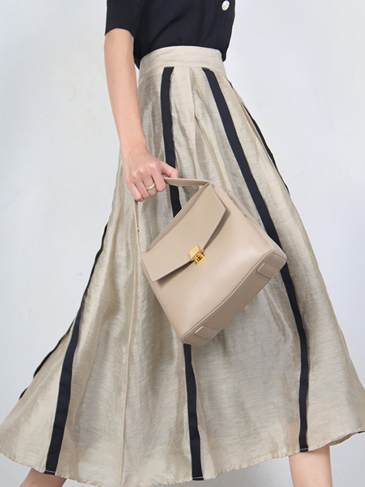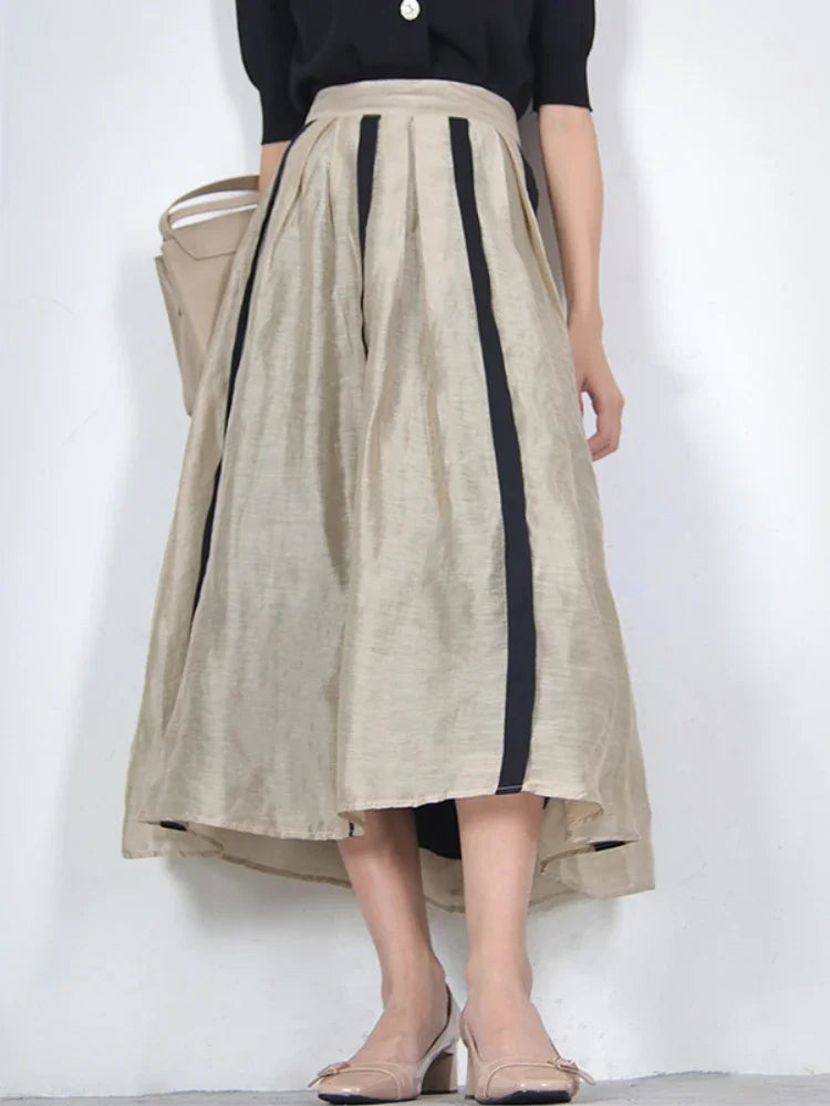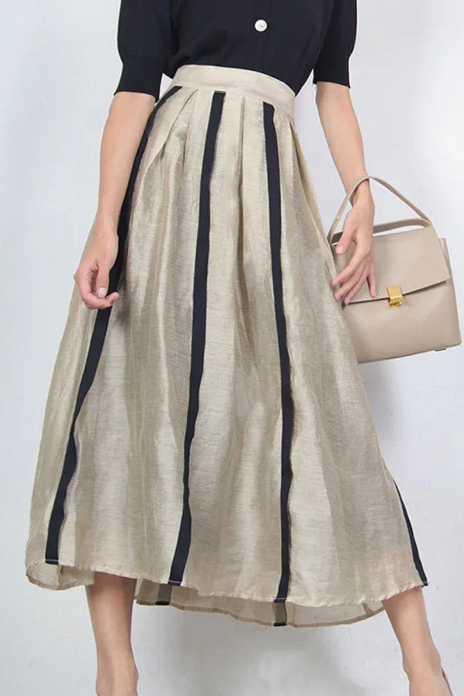 There’s something wonderfully graceful about the Ivara Skirt from Bauble Buy. The movement is airy, almost weightless, and the vertical contrast panels give it a clean, lengthened shape that feels polished without trying too hard. It’s an easy piece to dress up or down—tuck in a fitted knit for everyday elegance, or pair it with a crisp blouse when you want a more refined finish.
