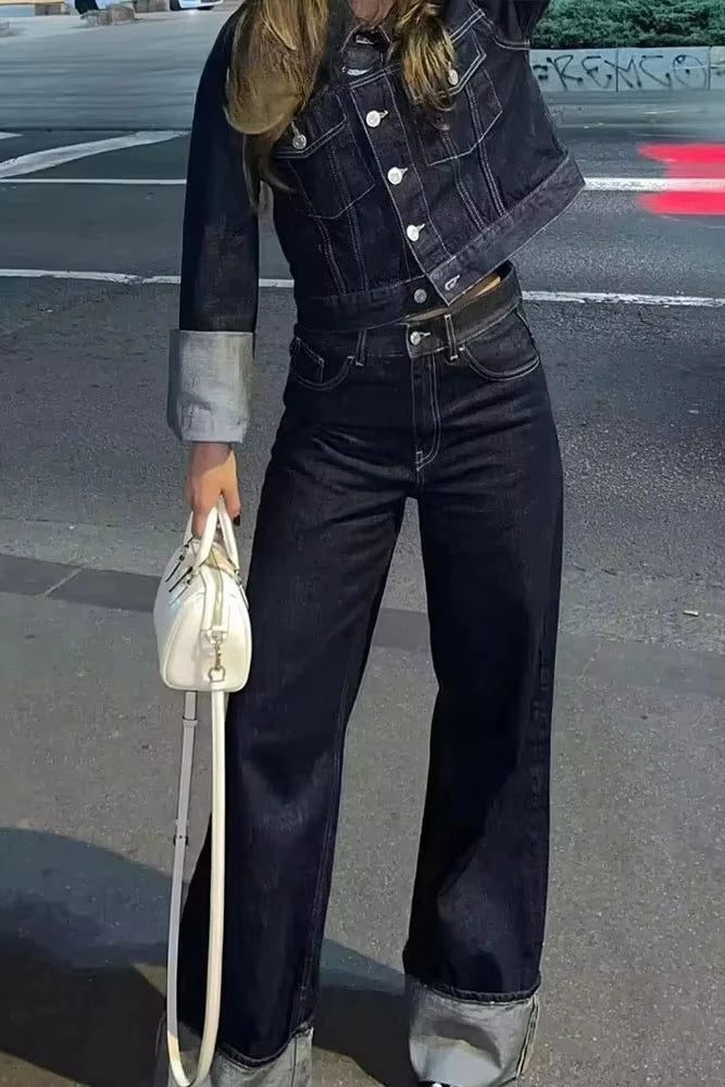 Bauble Buy’s Liora Vintage Set brings that effortless cool-girl energy with its dark-wash denim, crisp structure, and subtle retro vibe. The cropped jacket pairs perfectly with the wide-leg jeans, creating a clean, elongated silhouette that feels both modern and timeless. Dress it up with heels or keep it street-ready with chunky boots—this set does all the work for you.