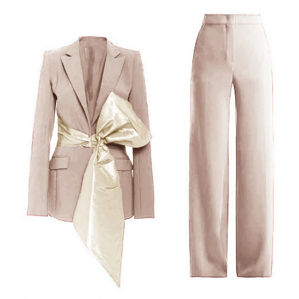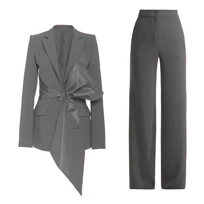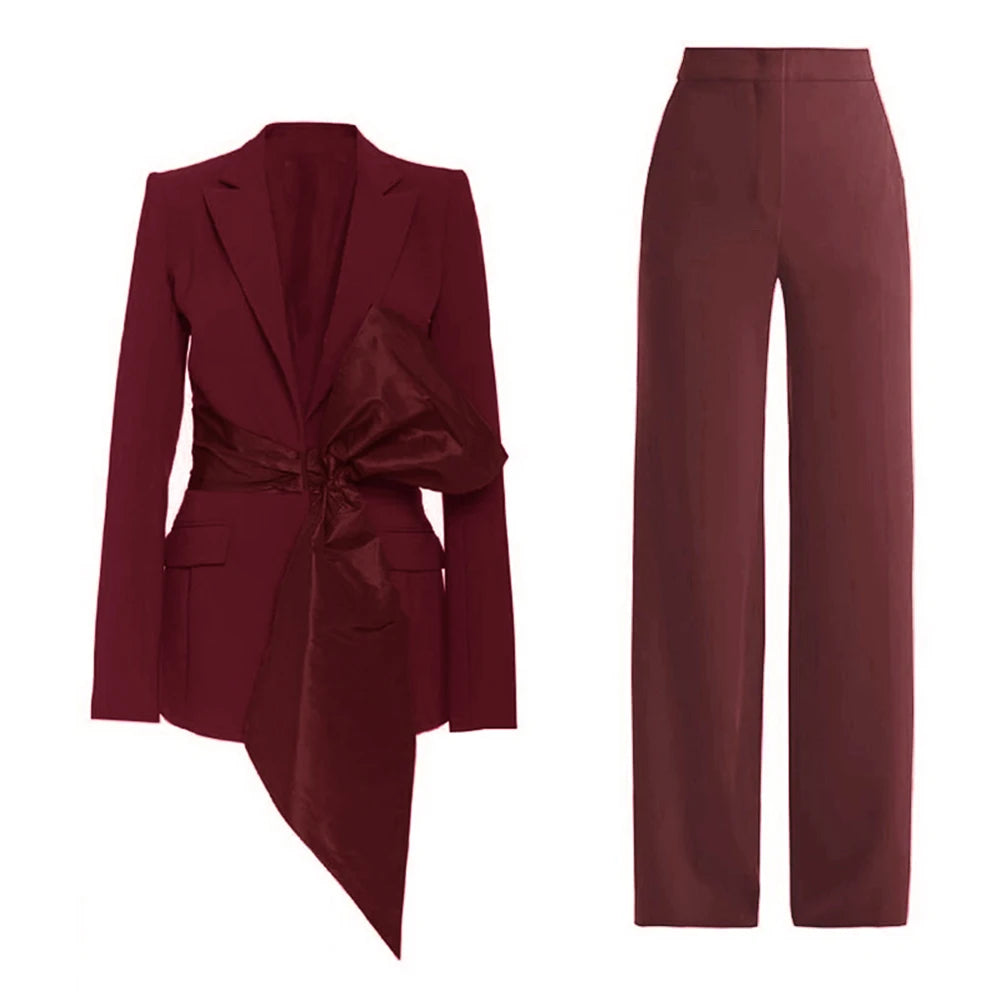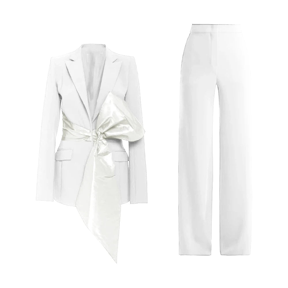 Bauble Buy’s Meridian Set redefines power dressing with modern elegance. The structured blazer, accentuated by a bold asymmetrical bow, pairs seamlessly with tailored trousers for a sleek, commanding look. Perfect for boardrooms, soirées, or any moment you want to make a lasting impression, this set combines confidence with refined sophistication.