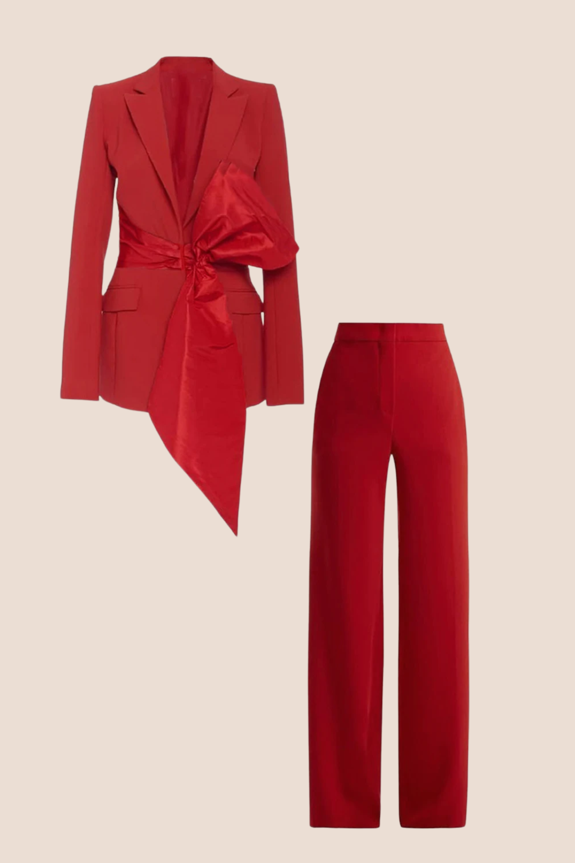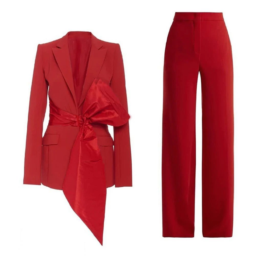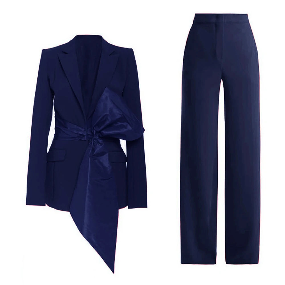 Bauble Buy’s Meridian Set redefines power dressing with modern elegance. The structured blazer, accentuated by a bold asymmetrical bow, pairs seamlessly with tailored trousers for a sleek, commanding look. Perfect for boardrooms, soirées, or any moment you want to make a lasting impression, this set combines confidence with refined sophistication.