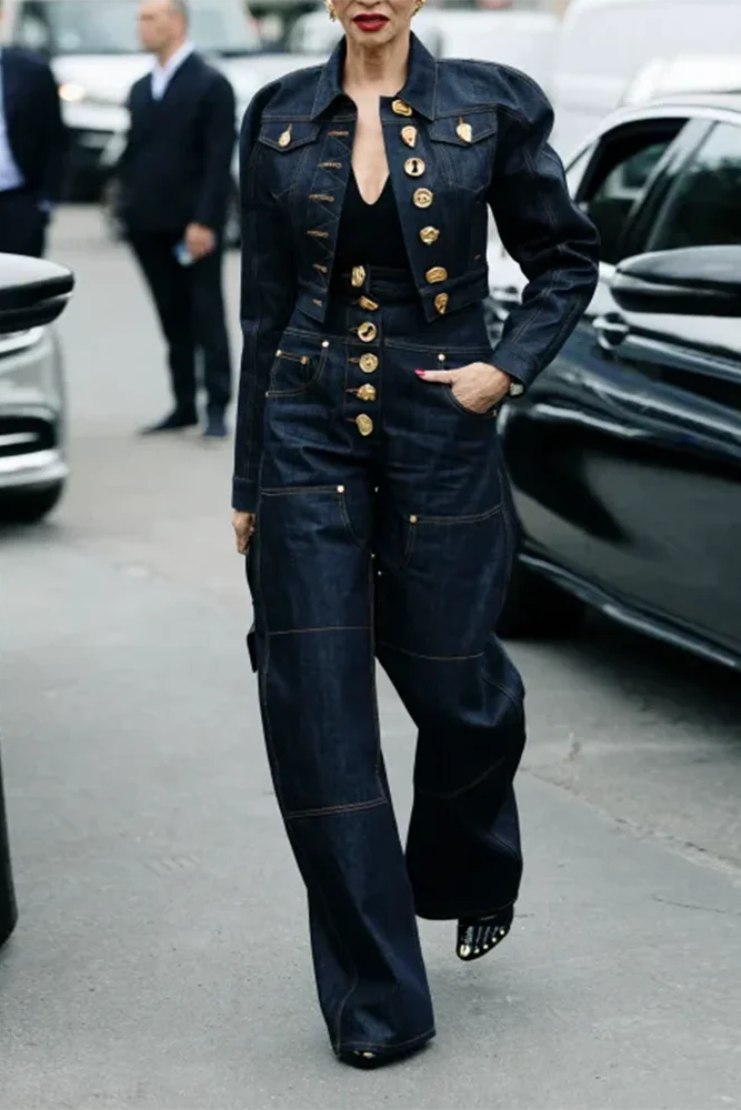 The Taysia Set from Bauble Buy gives denim a tailored, statement-ready twist. The cropped, structured jacket defines the waist while the wide-leg trousers keep the look balanced and effortless. Finished with bold gold buttons, it’s the kind of outfit that looks intentional without trying too hard—perfect for days when you want to feel polished, confident, and very in control.