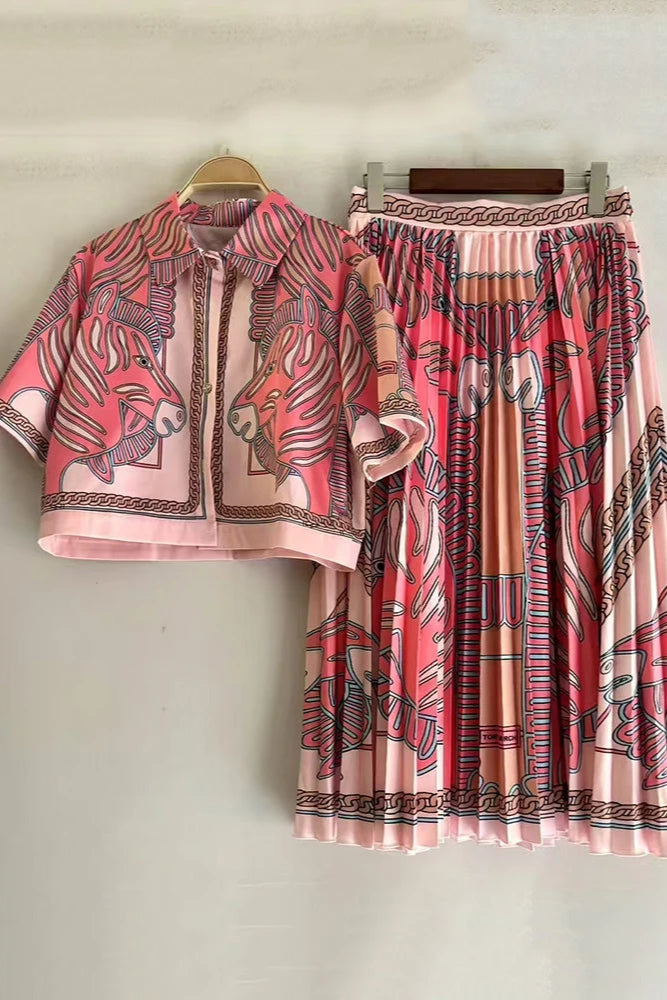 Bauble’s Wicke set is a playful yet polished pairing, crafted in a vibrant zebra motif that brings bold energy to any wardrobe. The structured short-sleeve top features a high collar and boxy silhouette, perfectly balanced by the softly pleated midi skirt. Made from lightweight fabric that moves with ease, this co-ord offers effortless styling—wear yours together for maximum impact or mix and match with neutral staples.