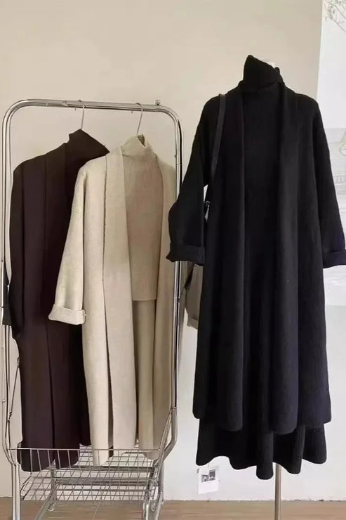 Think of Bauble's Alina Set as your wardrobe’s new power trio. With a cozy knit cardigan, vest jumper, and skirt, it’s made for layering, lounging, and looking effortlessly put-together. The clean lines and timeless feel mean you can mix and match it with just about everything you own—like a style chameleon, but make it chic.