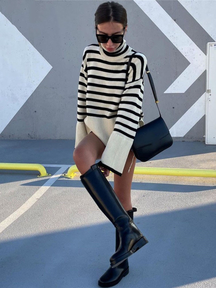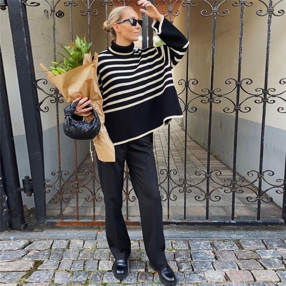 Striped sweater with ribbed trims