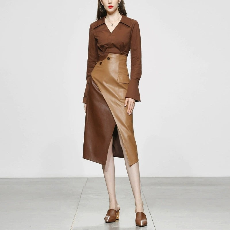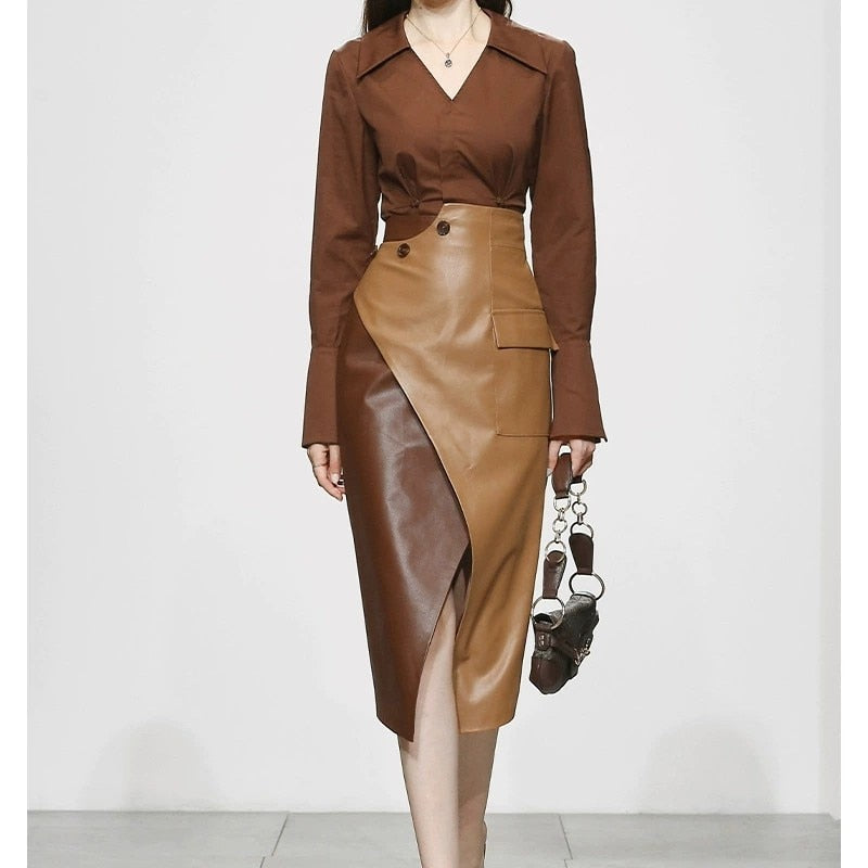 Step up your style game with the Harmony Duo! This 2-piece set of long sleeve and high waist contrast color pencil skirt is perfect for taking risks and pushing boundaries. Make a bold fashion statement and stand out in any crowd!