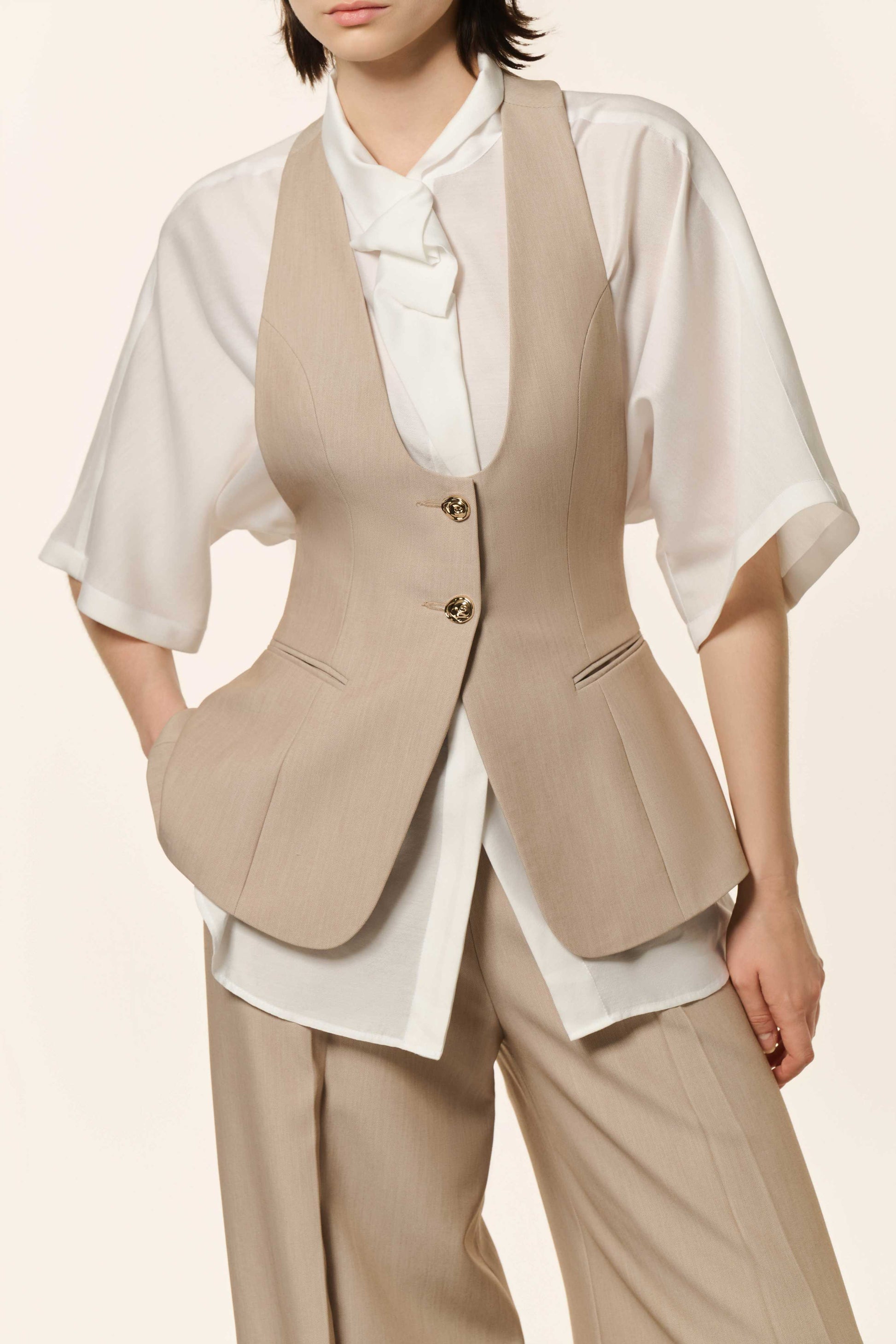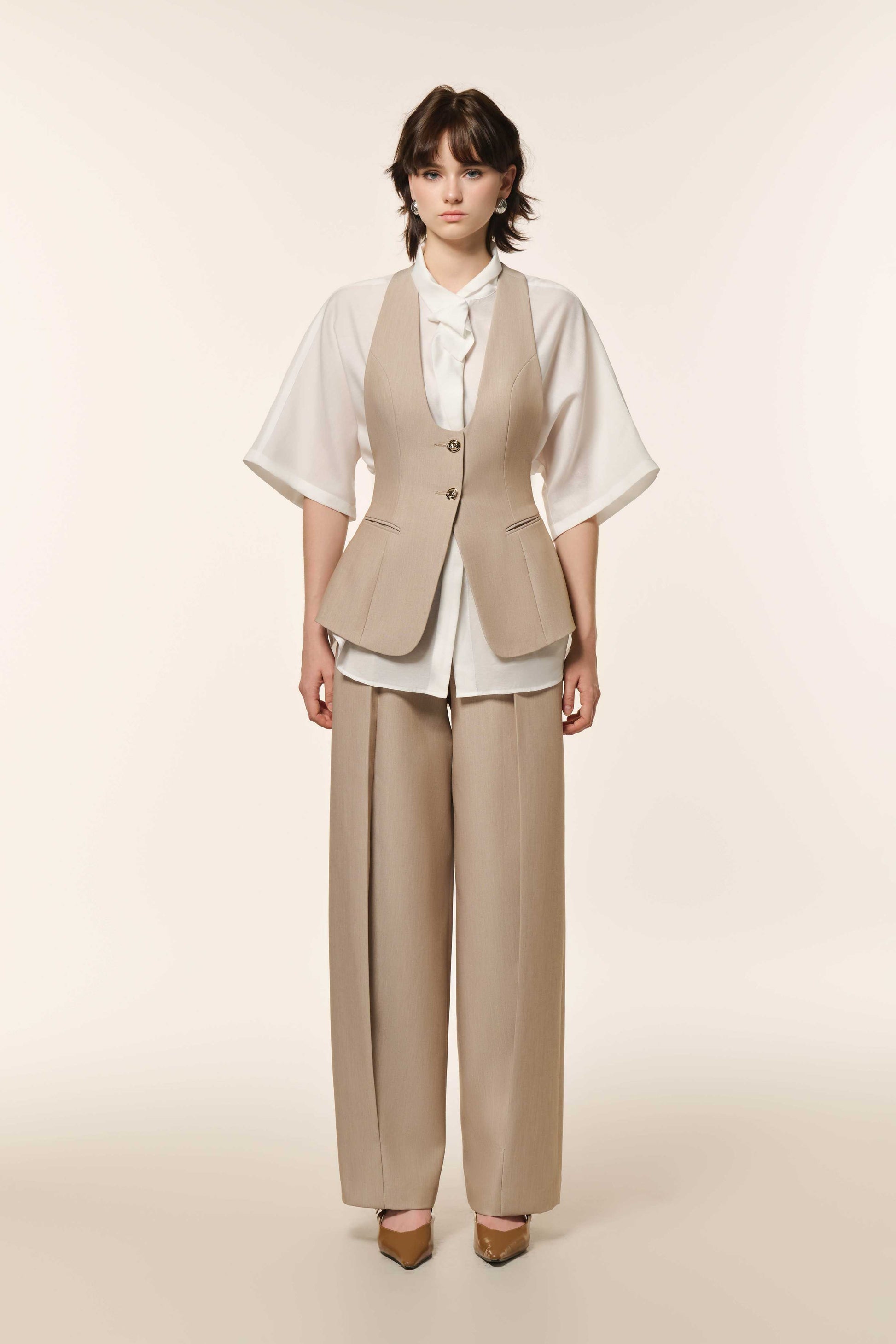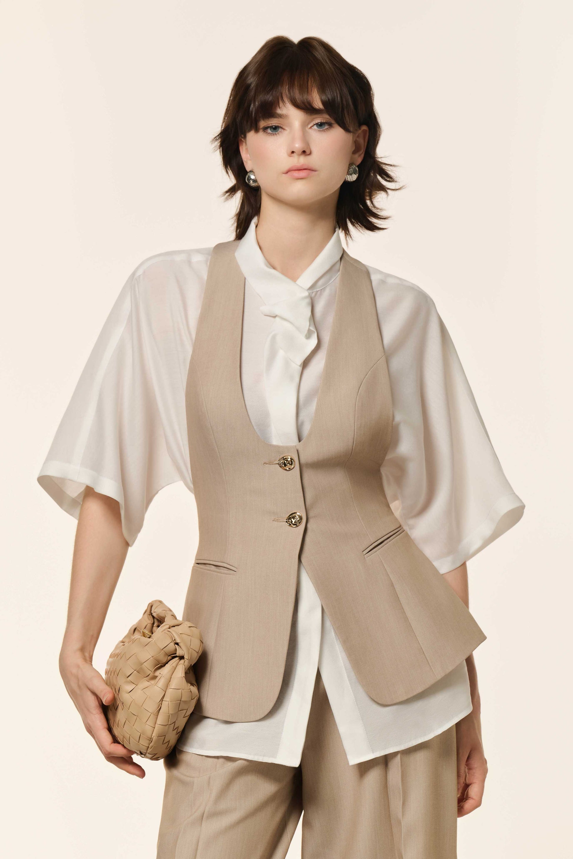 This oversized shirt offers a relaxed fit and modern edge, highlighted by its 3D draped collar for bold dimension. It's perfect for distinctive everyday style.