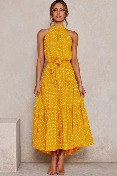 Channel the timeless appeal of the 1950s with a fit-and-flare polka dot dress like Bauble's 'Summer Polka' Dress or a soft pastel tea dress.
