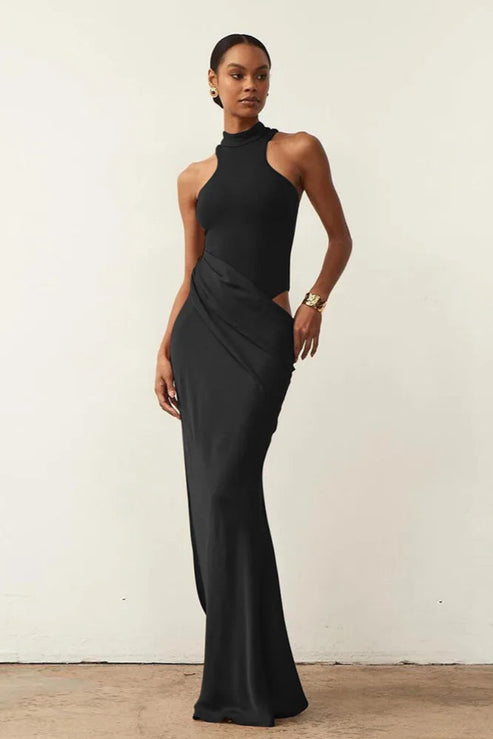 Bauble’s Kamari Dress is all about sleek, statement-making style. Made from silky fabric that shimmers with every step, it features bold asymmetric cutouts and flattering gathers that enhance your shape. A standout piece that’s equal parts sultry and sophisticated.