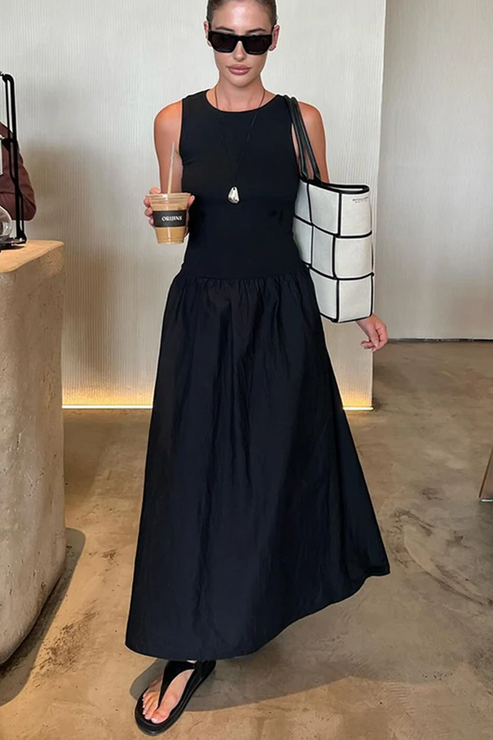 The secret to wearing black in the summer is all about texture and silhouette. Go for breathable fabrics like cotton, linen, or silk blends, and choose looser, flowy cuts that let you move (and breathe). Think of a strapless black midi dress with soft gathers—perfect for office days when you want to stay cool yet look polished.