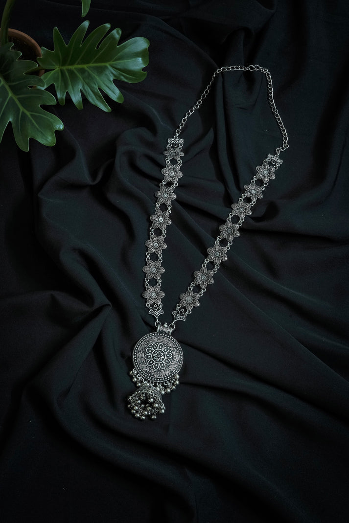 This season is less about flash and more about meaning—and Bauble’s antique Kohlapuri necklace tells a story in every detail. Adorned with etched floral links that catch the light, it pairs perfectly with the matching jhumkas, each crafted with delicate blooms to echo the necklace’s charm. An heirloom-worthy duo that feels as timeless as it looks.