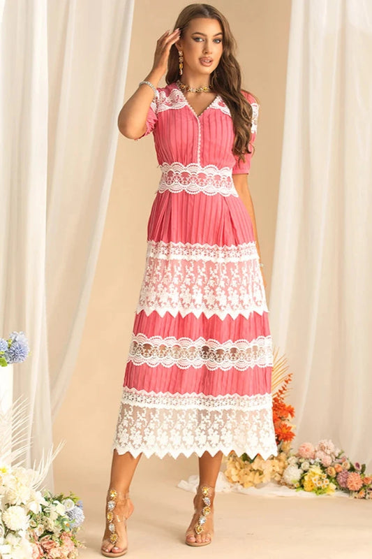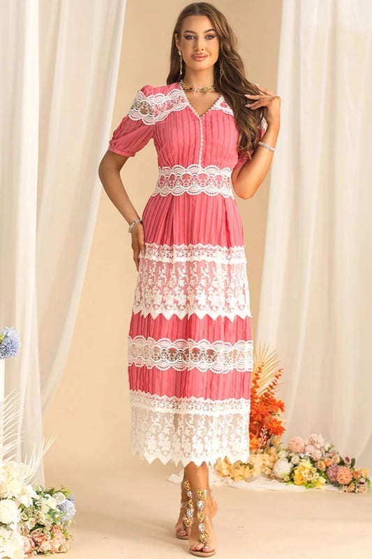 The fabric is very textured, It looks very temperament, very elegant dress, the brand's measurements are very standard, there is no color difference, I am very satisfied, they deliver it quickly, it takes about 10 days to arrive, I absolutely recommend! My parameters are 87-68-92, which is perfect.