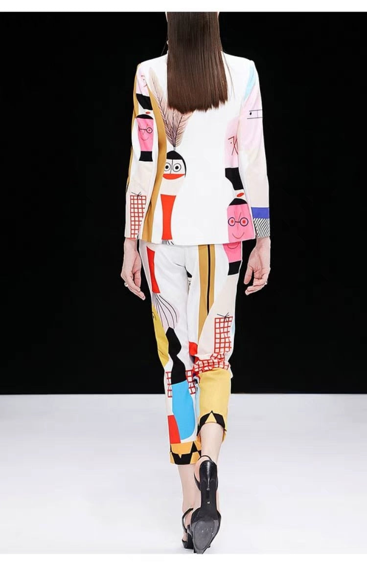 Experience the luxurious sophistication of this Art Dyeing Two-Piece Suit; This fashionable two-piece ensemble is the perfect choice for any fashionista to make a statement on the runway. The one-button jacket blazers and feet pants design encourages a unique style, making it the ideal choice for any discerning woman.