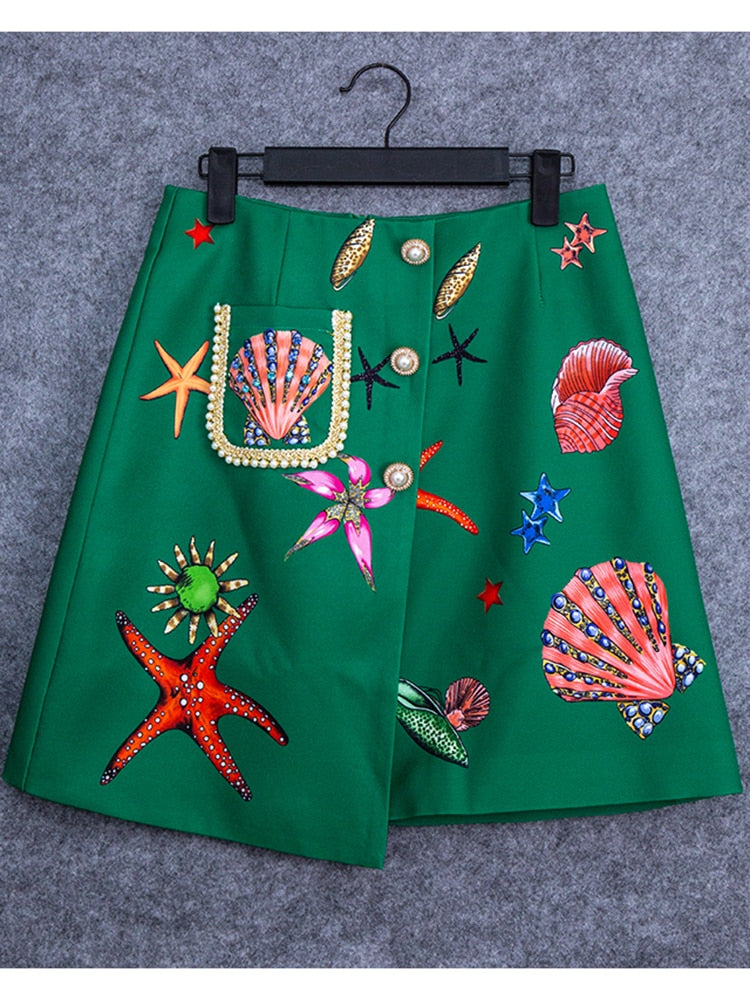 Bauble's 'Clover' skirt is embroidered with a colorful embellishments and sequins. This high waist mini skirt can be styled with a tucked-in tank or knitwear and lace-up sandals.
