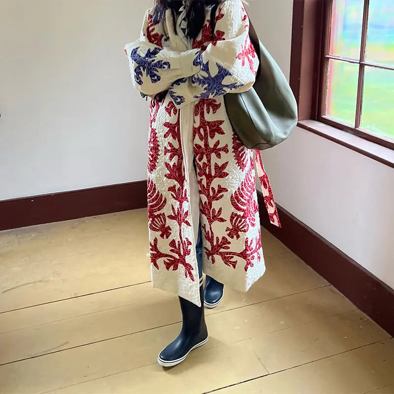 Wrap yourself in cozy comfort on cold days with the Cozy Caroline women's jacket. This thick, warm coat is printed with a delicate floral pattern and finished with a chic belt for maximum style points. Perfect for taking on winter like a fashionista!