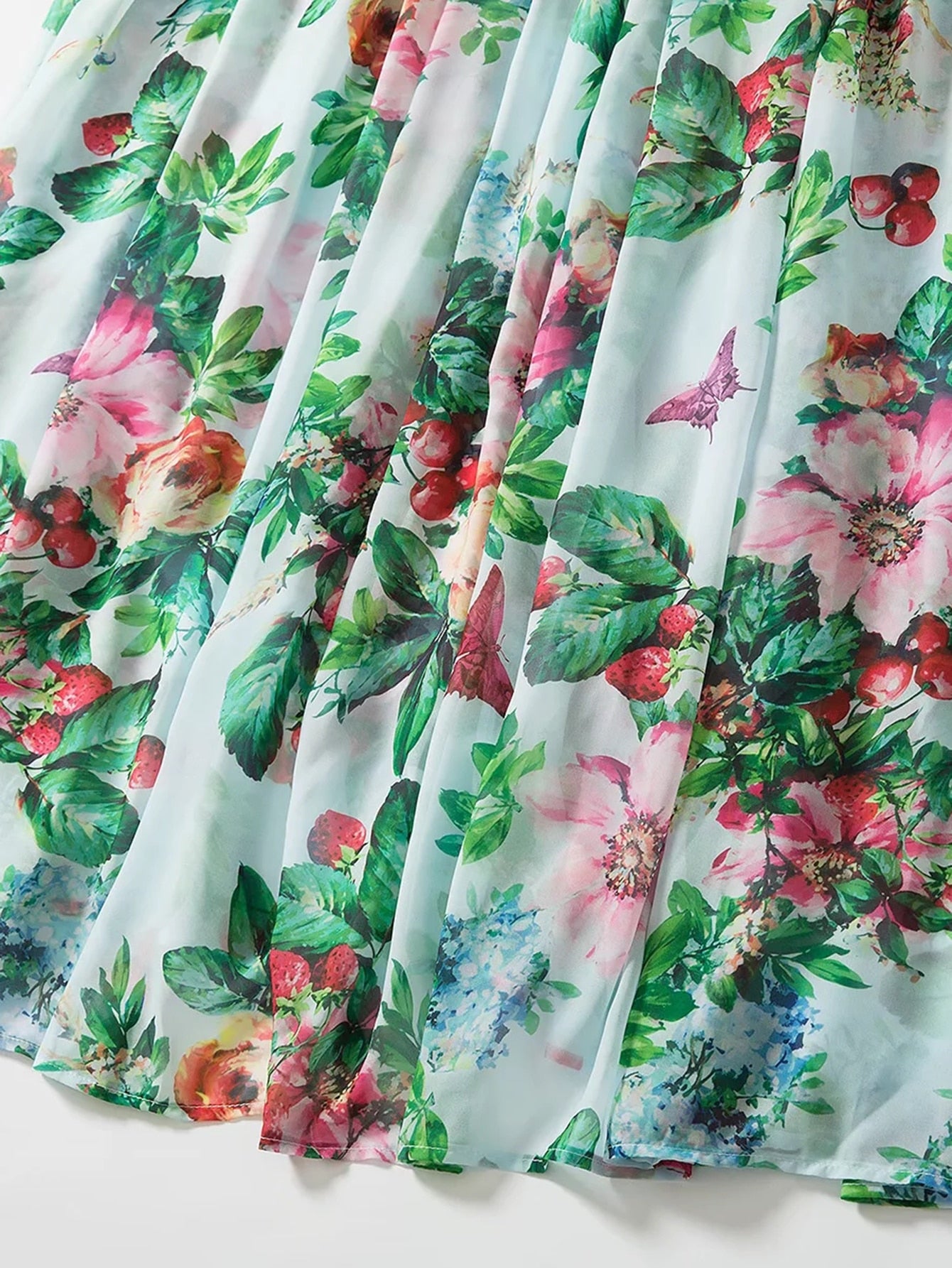 Floral Printed Chiffon Maxi Dress with Bow Knot