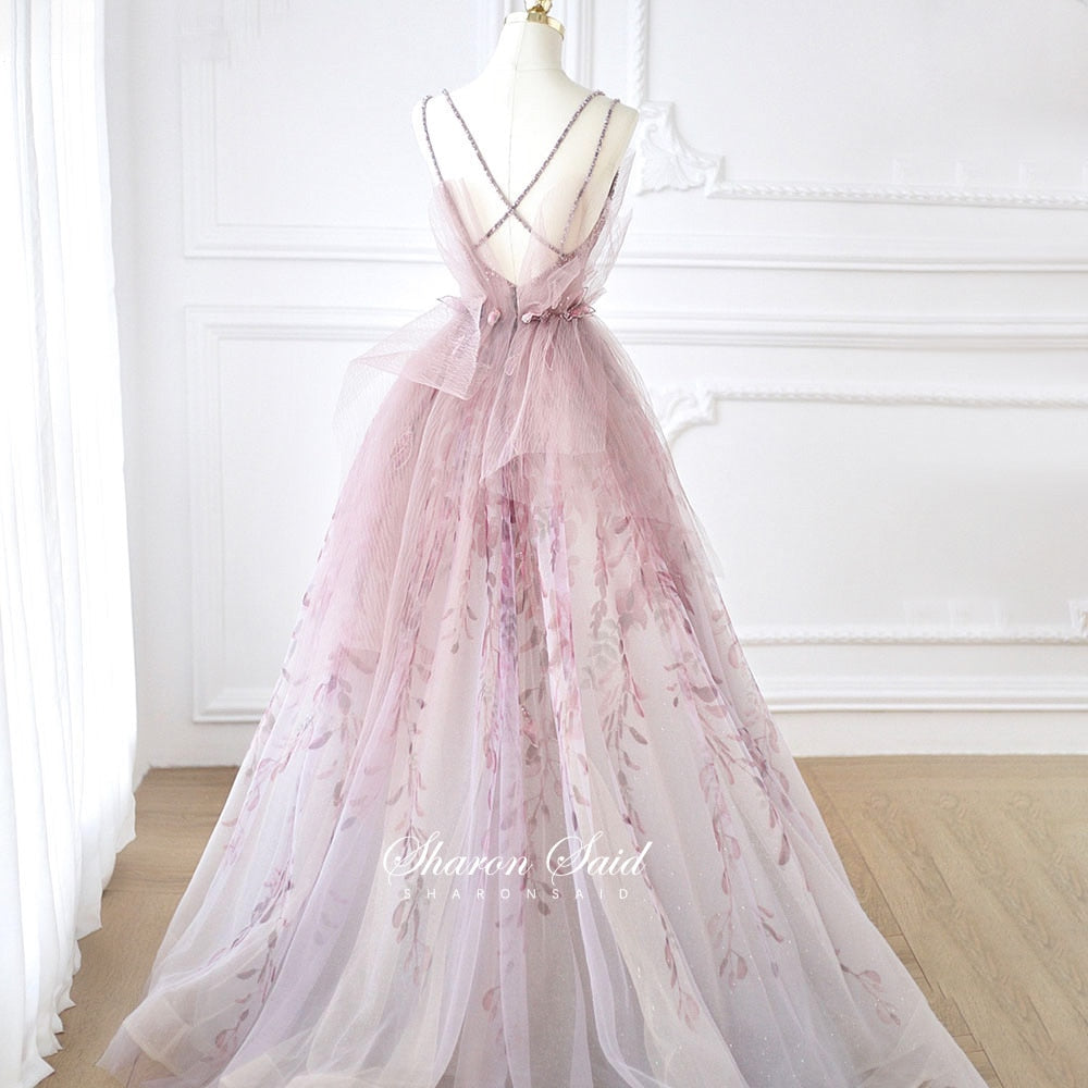 Editors' Notes: Make a statement in this fabulous Lilac Tulle Orchid dress! This elegant yet eye-catching formalwear offers the perfect balance of sophistication and sass! The long length and spaghetti straps provide a sleek silhouette while the backless detail and florally-embroidered tulle add the perfect dose of glam. Get ready to turn heads at your next special event!