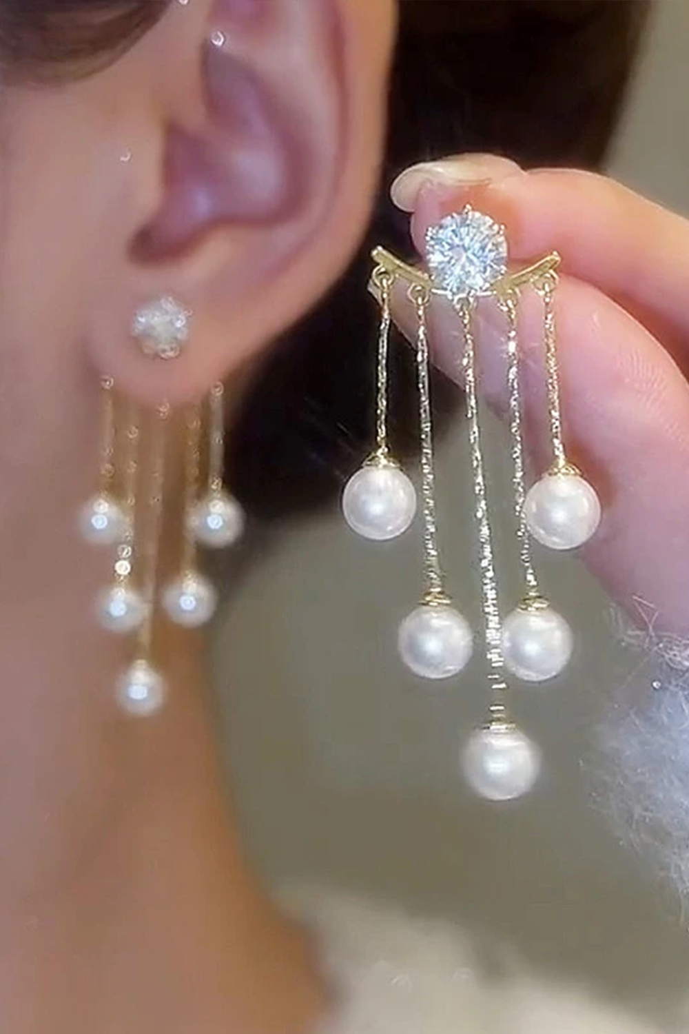 Editors' Notes: Bauble's Pearl Zest are a stunning and feminine pair of earrings that feature a cascade of delicate tassels adorned with zircon stones and pearls. These earrings are crafted with attention to detail and feature a combination of materials, including high-quality zircon stones, lustrous pearls, and gold-plated metal. The tassel design adds a touch of elegance and movement to these earrings, making them a great choice for formal events or special occasions. With their intricate design and eye-catching sparkle, these earrings are sure to make a statement and elevate any outfit.