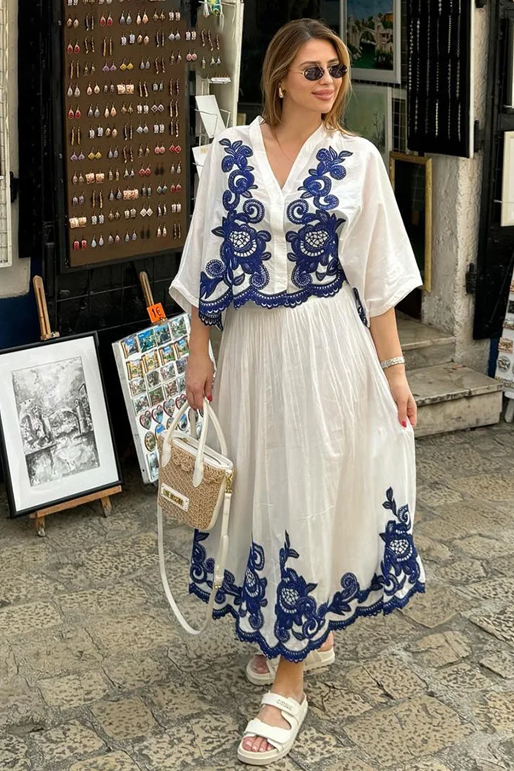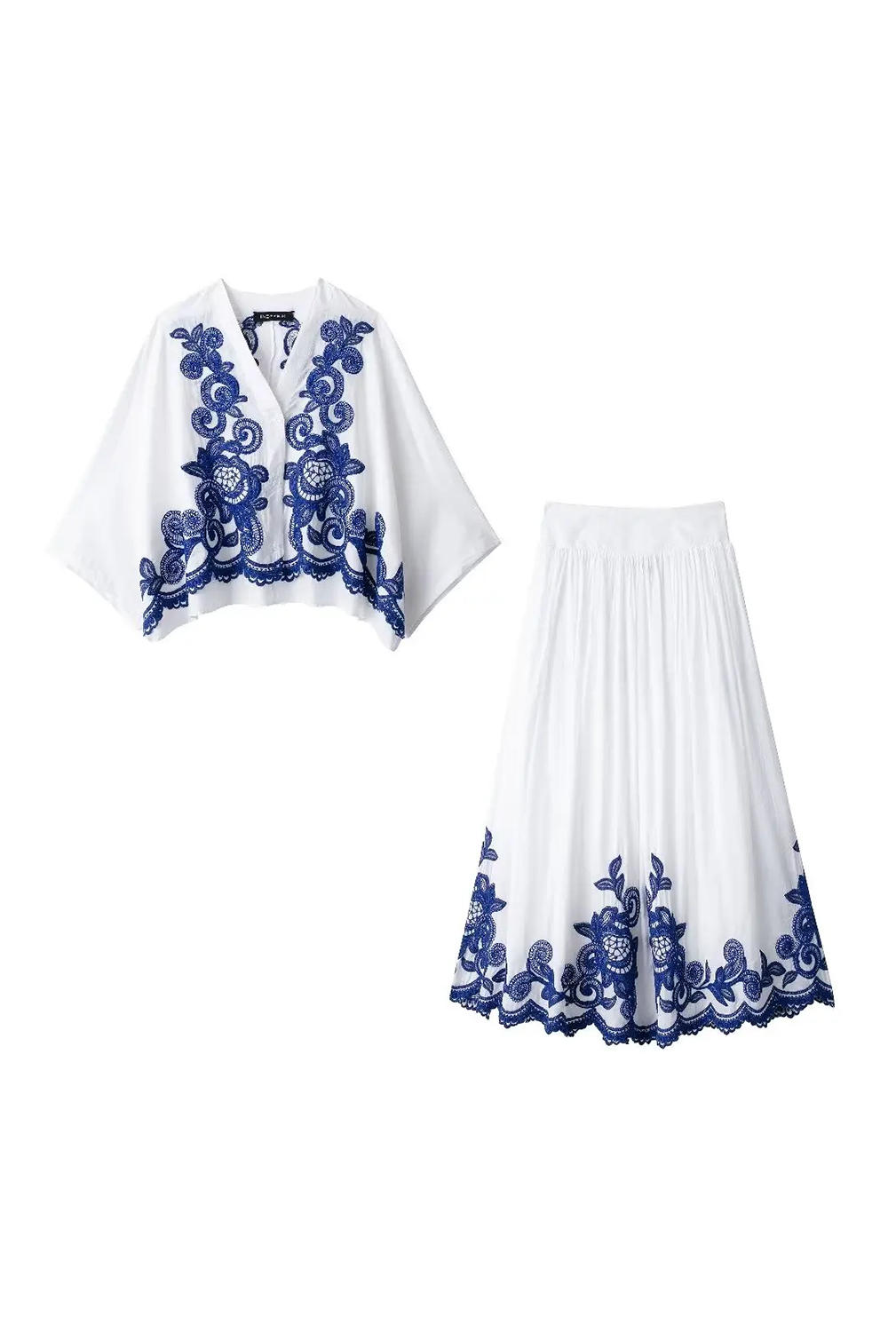 Bauble’s ‘Raya’ midi skirt is a lesson in minimalism - there's something so undeniably cool about its simplicity. Made from white soft fabric, it sits low at the hips and has a floaty, softly pleated shape. Wear it with coordinated top!