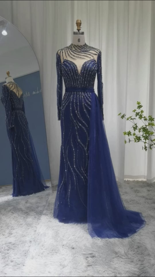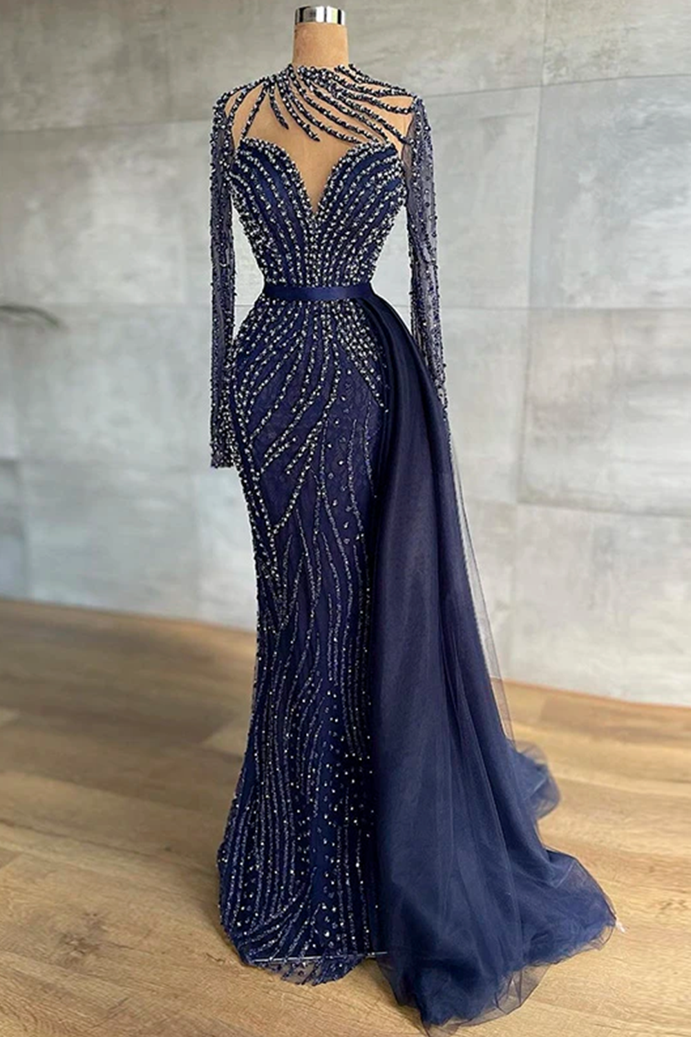 Editors' Notes: Look elegant and enchanting in this luxury navy blue mermaid evening dress. The detachable skirt will give you a versatile look to wear it again and again. Make a statement with the Sapphire Serenade!
