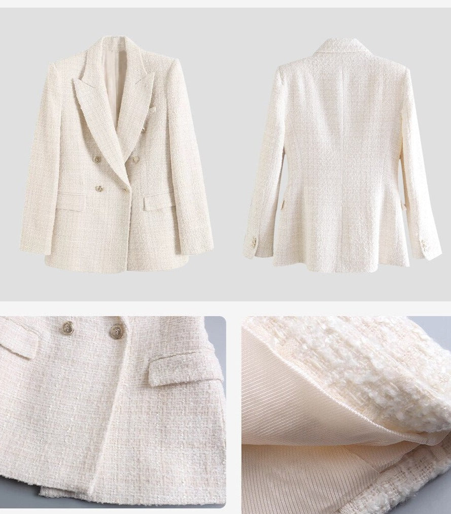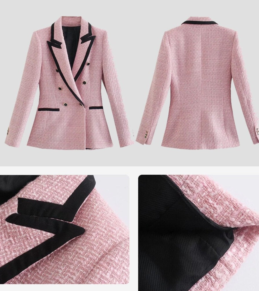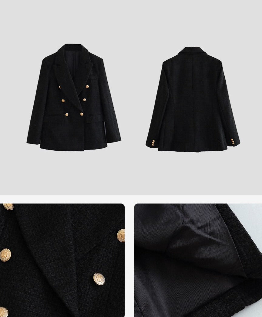 Strut into the party in style with this vintage houndstooth blazer, perfect for turning heads! Its long sleeve, double-breasted design and chic flap pockets offer a timeless look with tons of fashion-forward flair. Rock the retro vibes with this Women's Fashion staple! #fashunalert!
