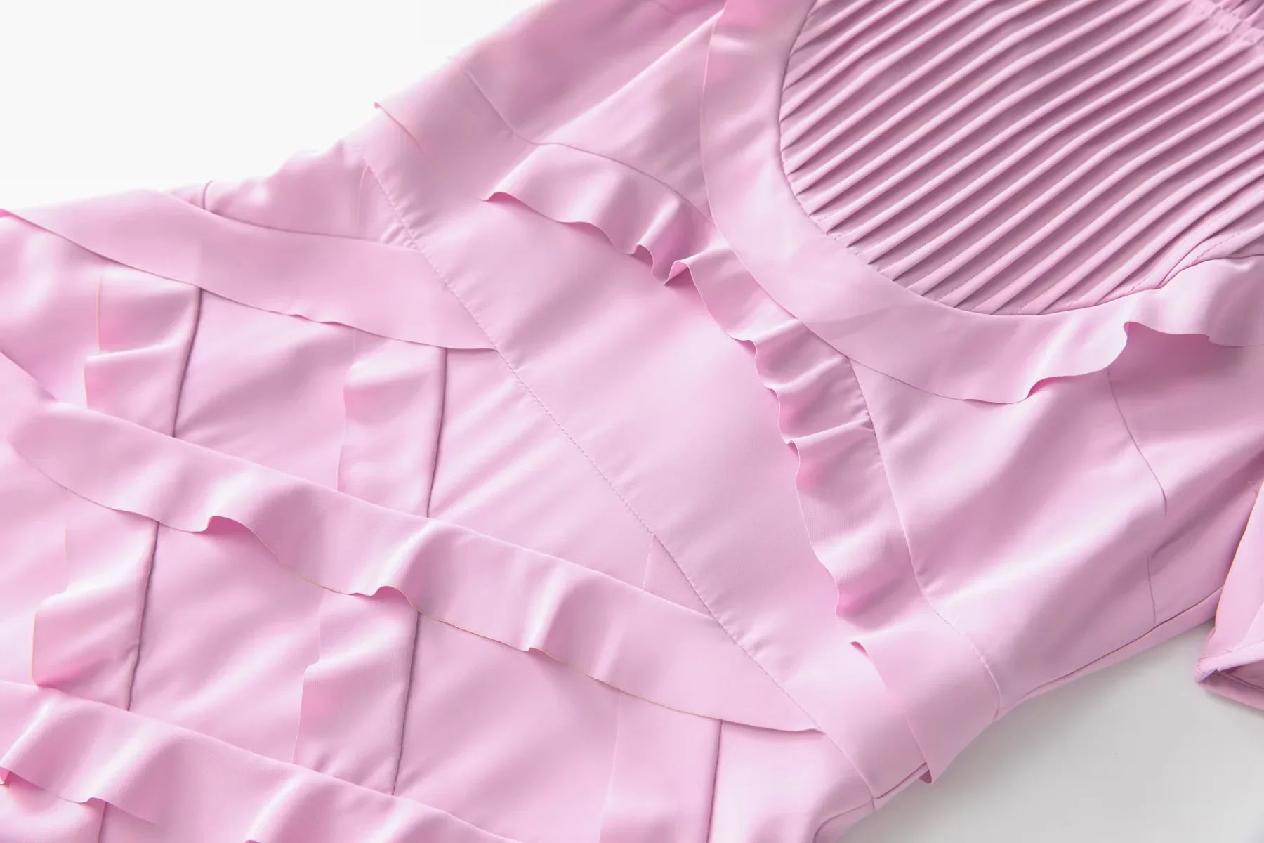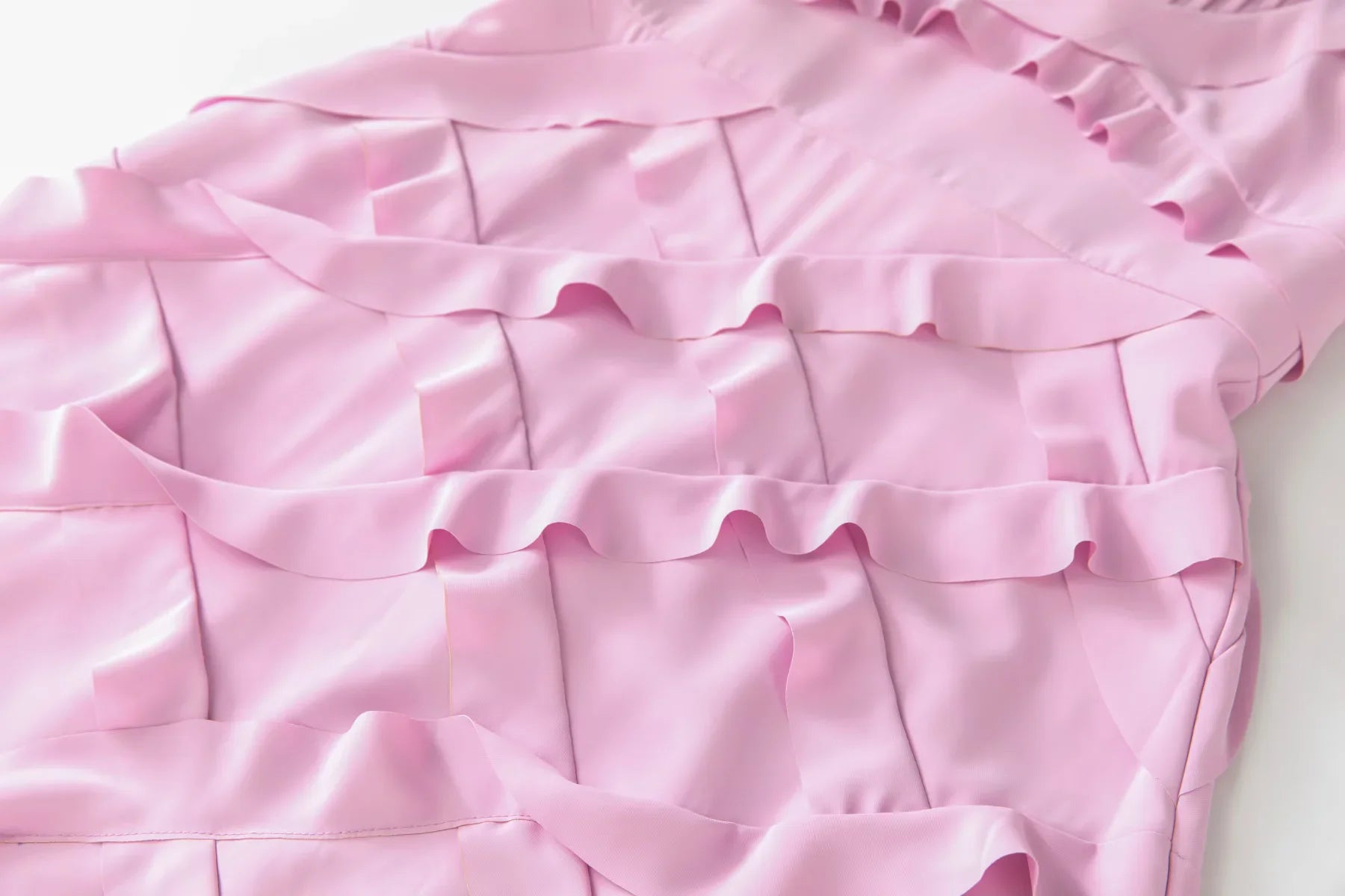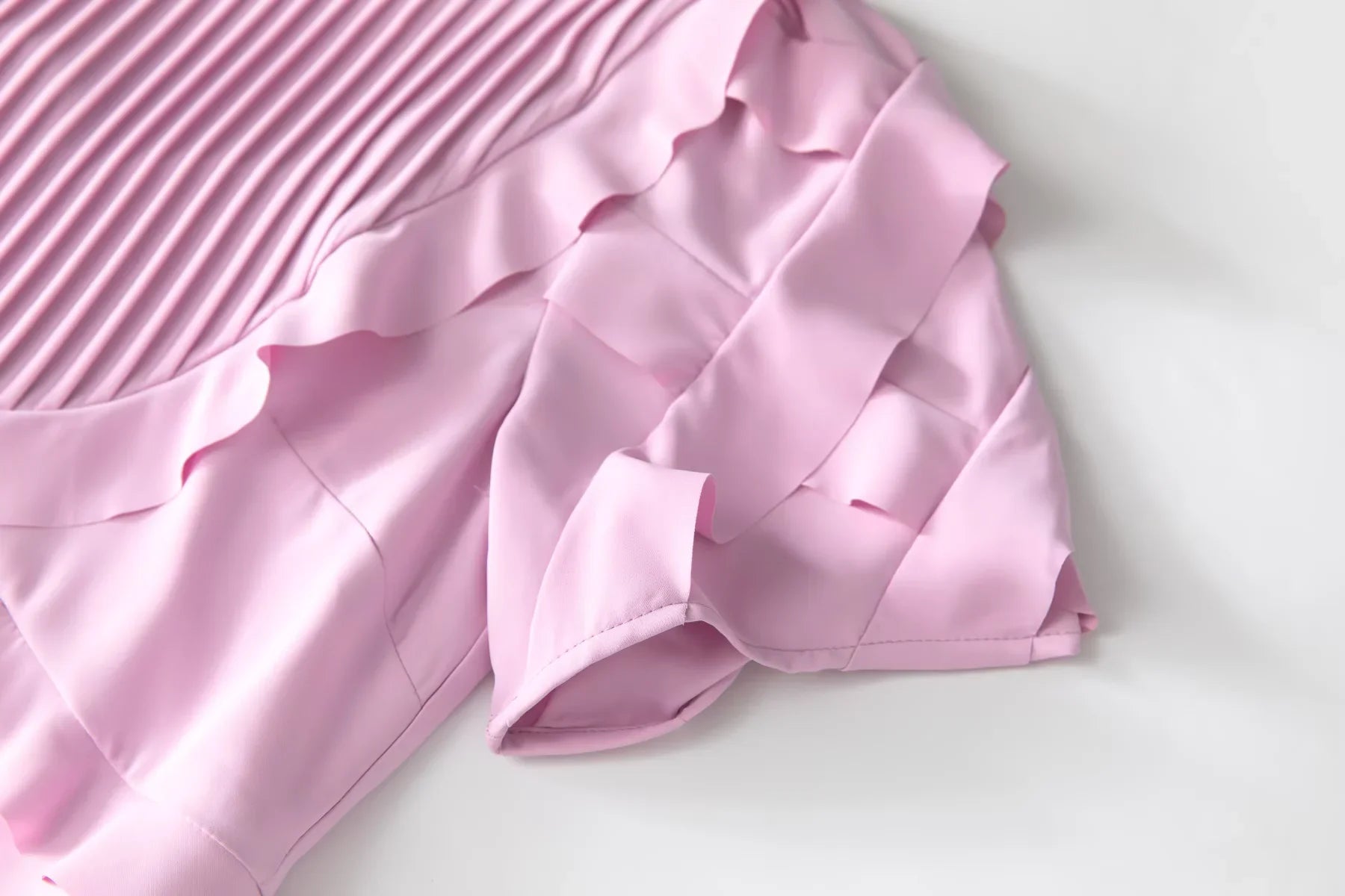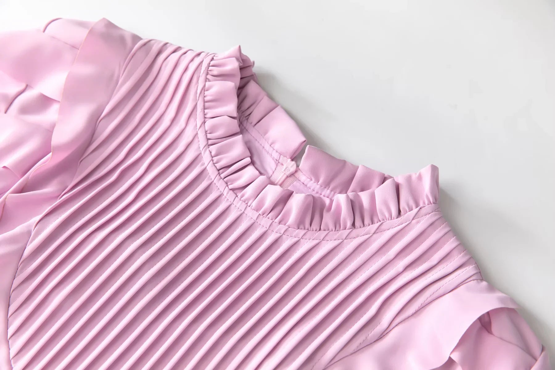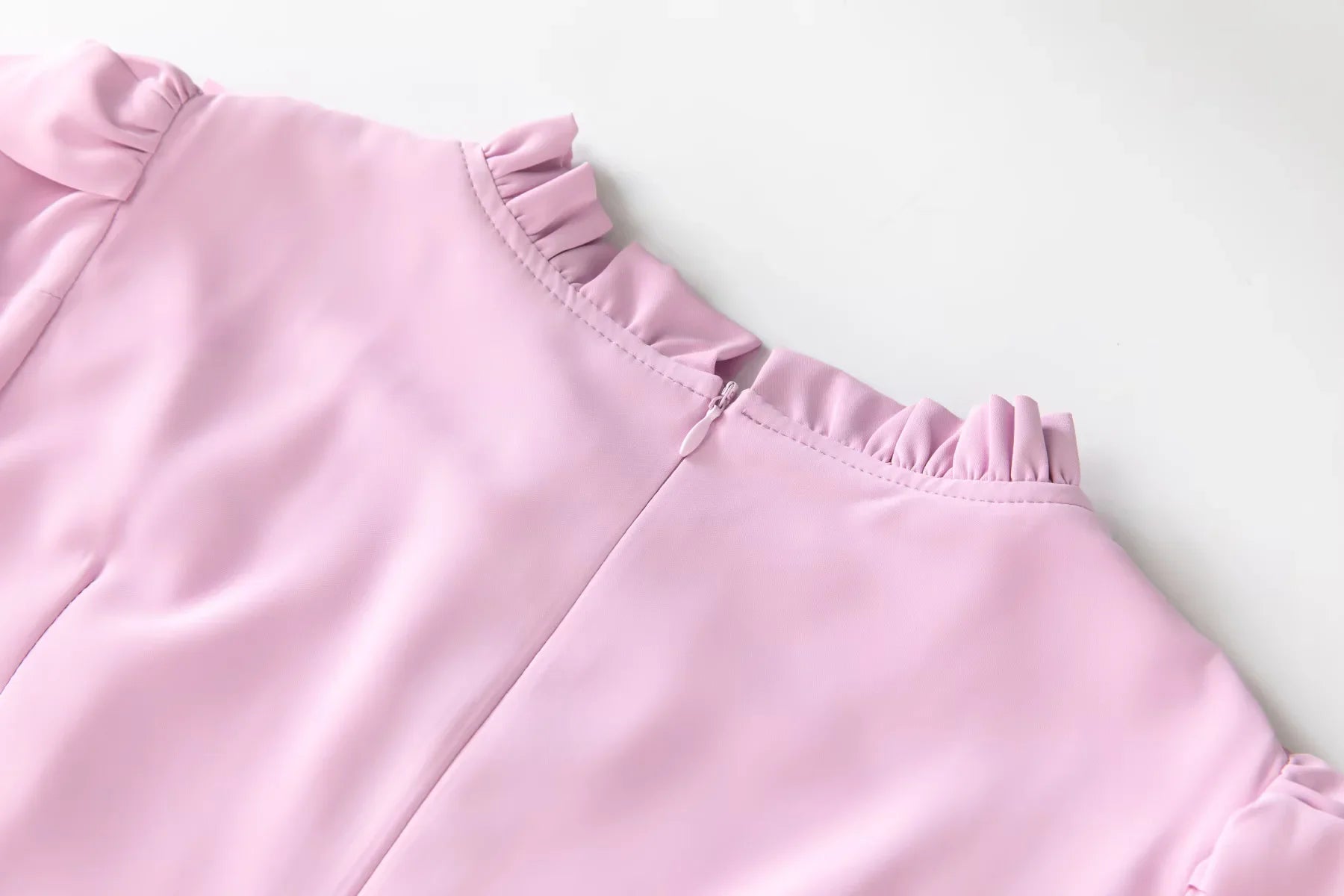 Dresses Length: Midi | Sleeve Style: Short sleeve | Silhouette: A-Line | Neckline: stand | Pattern Type: Solid | Style: HIGH STREET | Waistline: Empire | Feature: anti-wrinkle | Decoration: Appliques | Weaving method: woven | Fashion Element: Simple | Sleeve Length: Short | Pockets: NO | Fit: Regular | chest Pad: NO | Hem Shape: A-Line | Occasion: Daily | Season: Summer