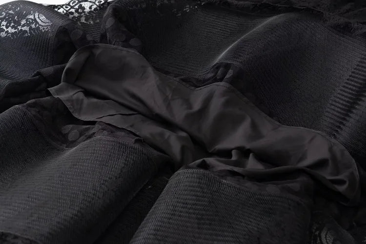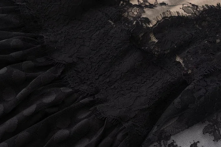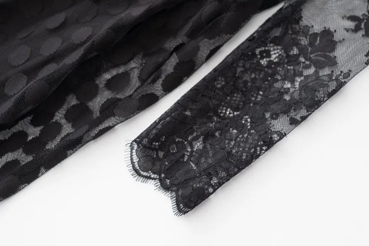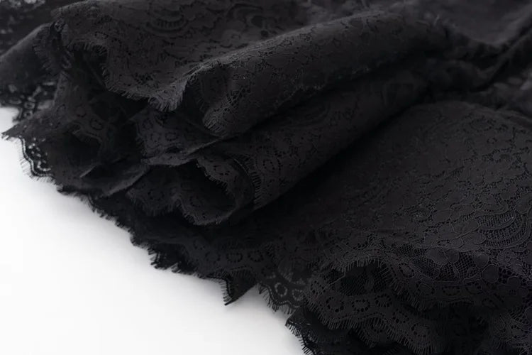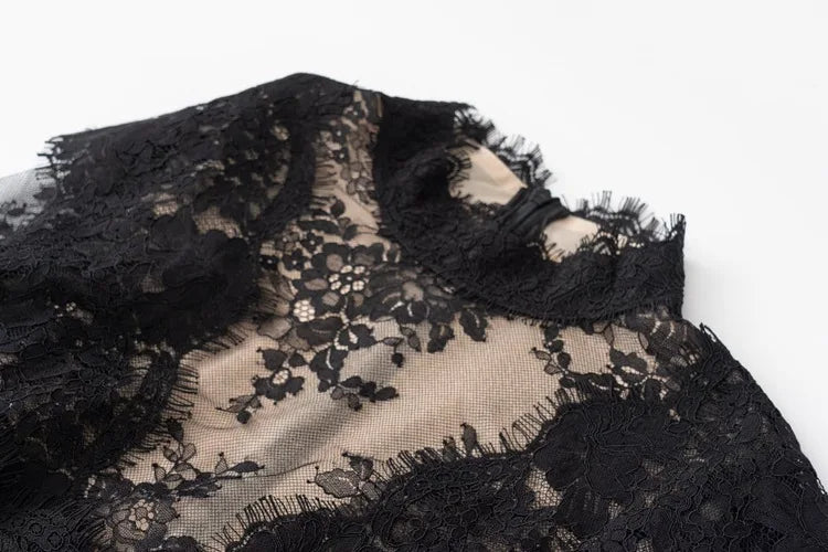 A graceful fusion of elegance and craftsmanship, this formal long dress features delicate lace long sleeves and a high waist that flatters the figure. Made from breathable polyamide with a soft cotton lining, it combines structure and comfort effortlessly. The embroidered organza fabric and intricate lace detailing create a timeless, vintage-inspired look perfect for refined occasions.