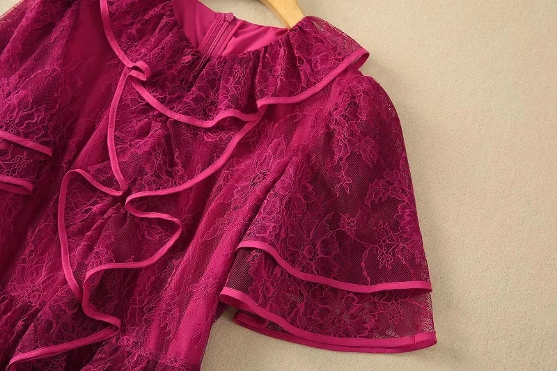 A graceful mix of charm and ease, this floral dress is tailored from a soft polyester-spandex blend that flatters the figure. The A-line silhouette and O-neckline keep it classic, while lace and ruffle accents add a romantic touch. Perfect for sunny days or casual gatherings, it’s a versatile piece with timeless appeal.
