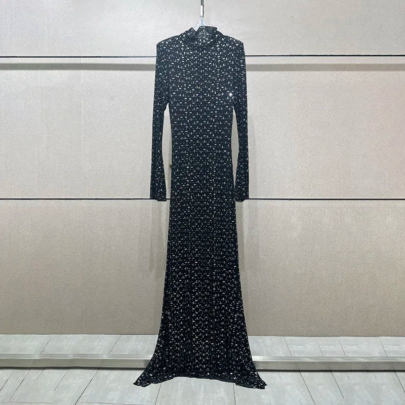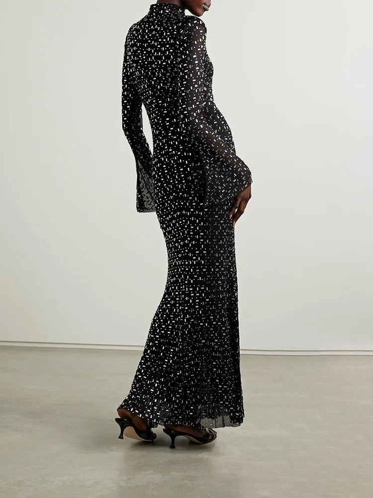 Bauble's 'Amaryllis' Dress has a classic black design with stunning rhinestone embellishments and a high mesh neck for a slimming silhouette. There's no doubt that you'll make an unforgettable entrance at your next event in this dress!