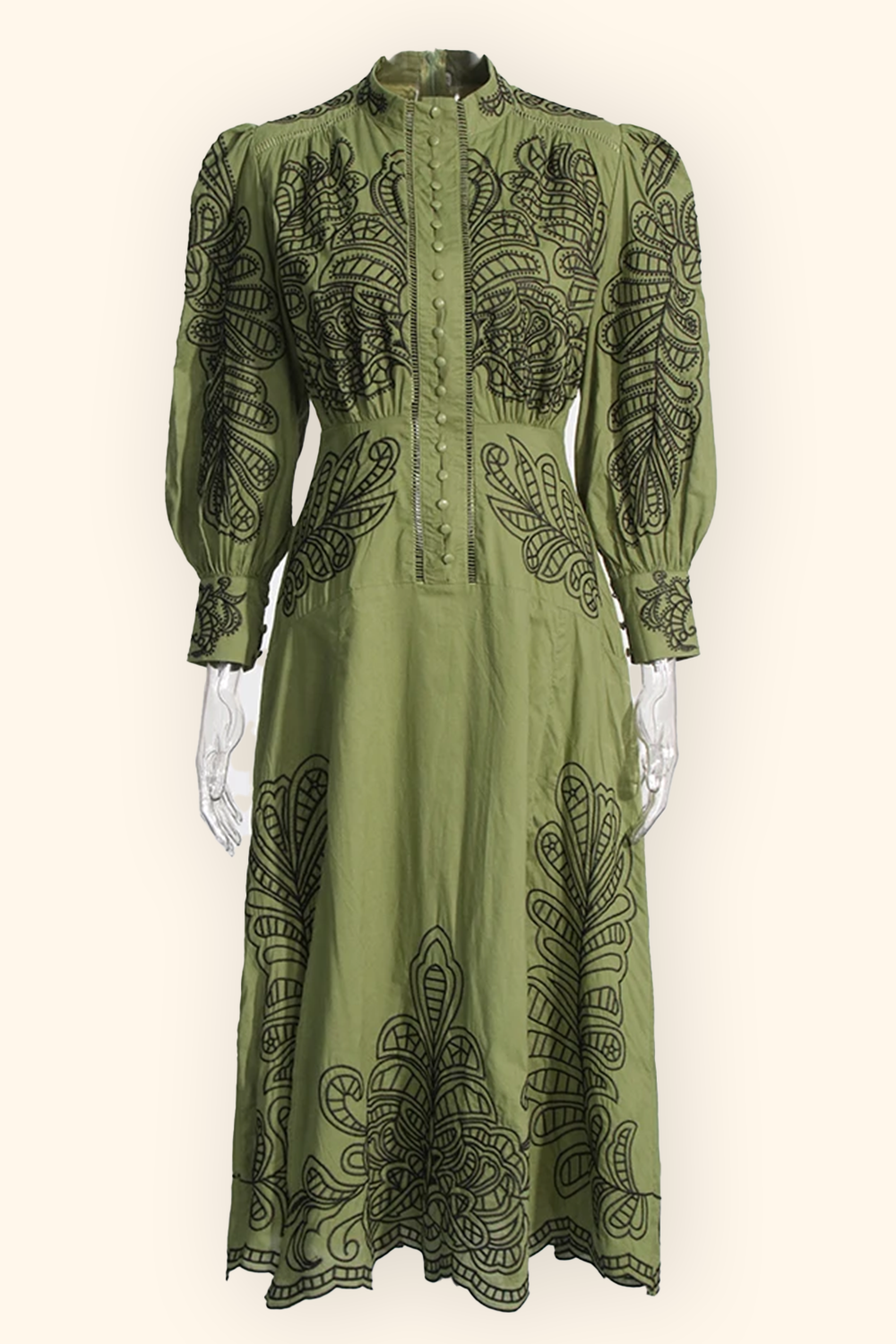 Exclusive Bauble's, 'Anastasia’ dress is printed with vibrant bloom pattern and a swirling motif, for an elegant take on maximalism. Made from airy fabric, it has a high neckline that falls to a tapered waist and floaty skirt. Style the midi hem with slim heels.