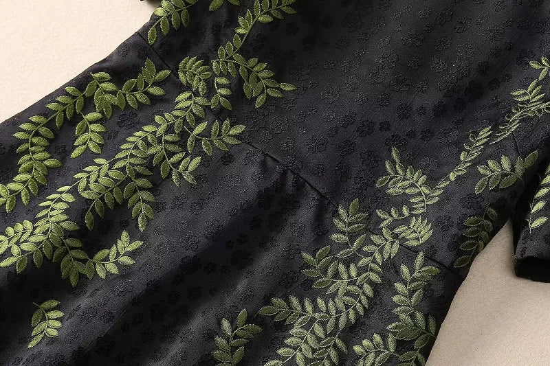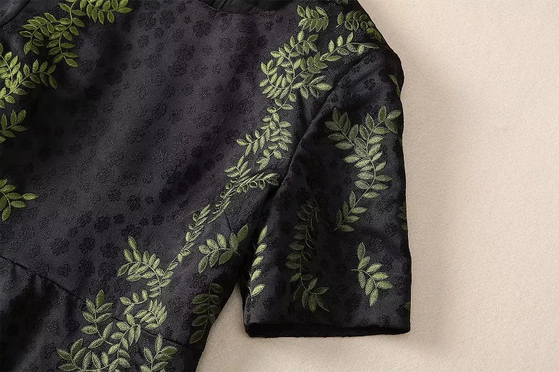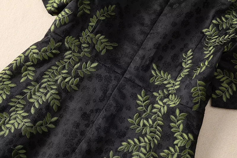 Dresses Length: Midi | Sleeve Style: Short sleeve | Silhouette: A-Line | Material: Spandex / Polyester | Neckline: O-Neck | Pattern Type: Solid | Style: Vintage | Waistline: Empire | Feature: anti-wrinkle, Breathable, Dry Cleaning | Decoration: Embroidery | Logo/graphic design: embroidered | Technics: embroidered | Weaving method: knitted | Fashion Element: Vintage | Sleeve Length: Short | Season: Spring |
