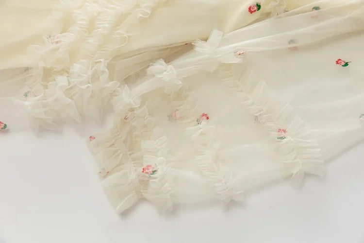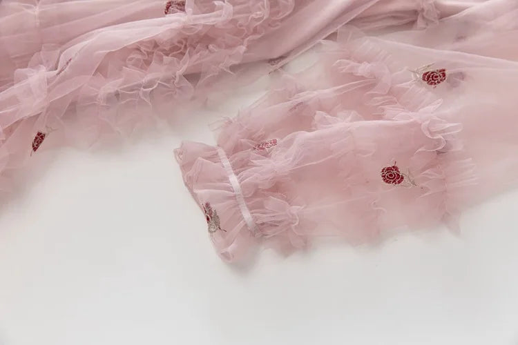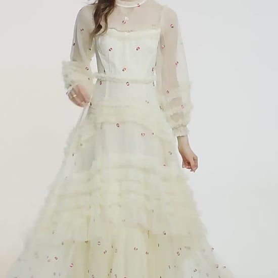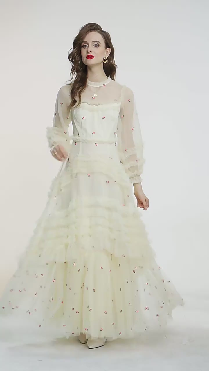 Sleeve Style: Regular | Dresses Length: Maxi Standard | Silhouette: A-Line | Waistline: Empire | Built-in Bra: NO | Style: Party | Weaving method: knitted | Logo/graphic design: embroidered | Technics: embroidered | Feature: anti-wrinkle, TRANSLUCENT | Neckline: stand | Fashion Element: Vintage | Sleeve Length(cm): Full | Decoration: Ruffles, Embroidery, Zipper | Pattern Type: Floral | Gender: Women | Single gross weight: 0.950 kg