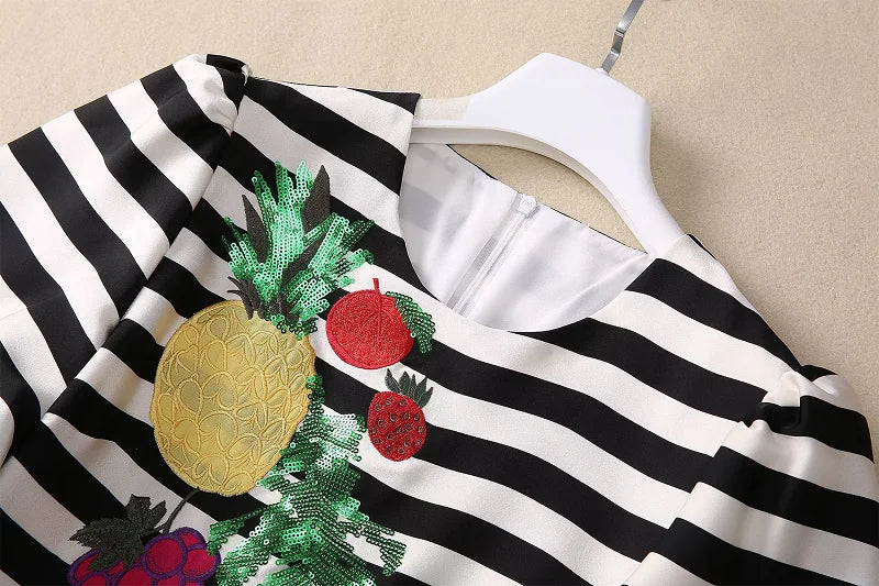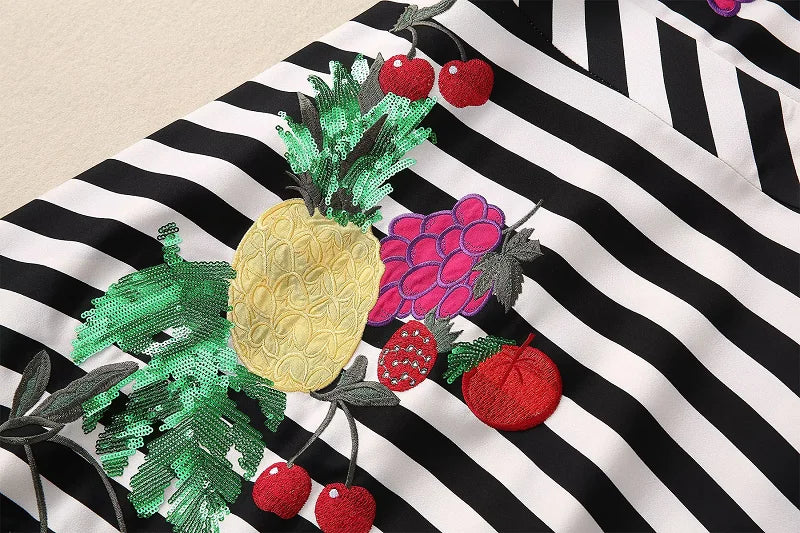 Dresses Length: Midi | Sleeve Style: Short sleeve | Silhouette: Asymmetrical | Fabric Type: cotton polyester | Material: cotton Polyester | Neckline: O-Neck | Pattern Type: Patchwork | Style: HIGH STREET | Waistline: Empire | Feature: anti-wrinkle | Decoration: Sequined | Logo/graphic design: embroidered | Printing Methods: Digital printing | Technics: Beaded | Weaving method: knitted | Fashion Element: Simple | Sleeve Length: Short | Season: Spring | Single gross weight: 0.800 kg