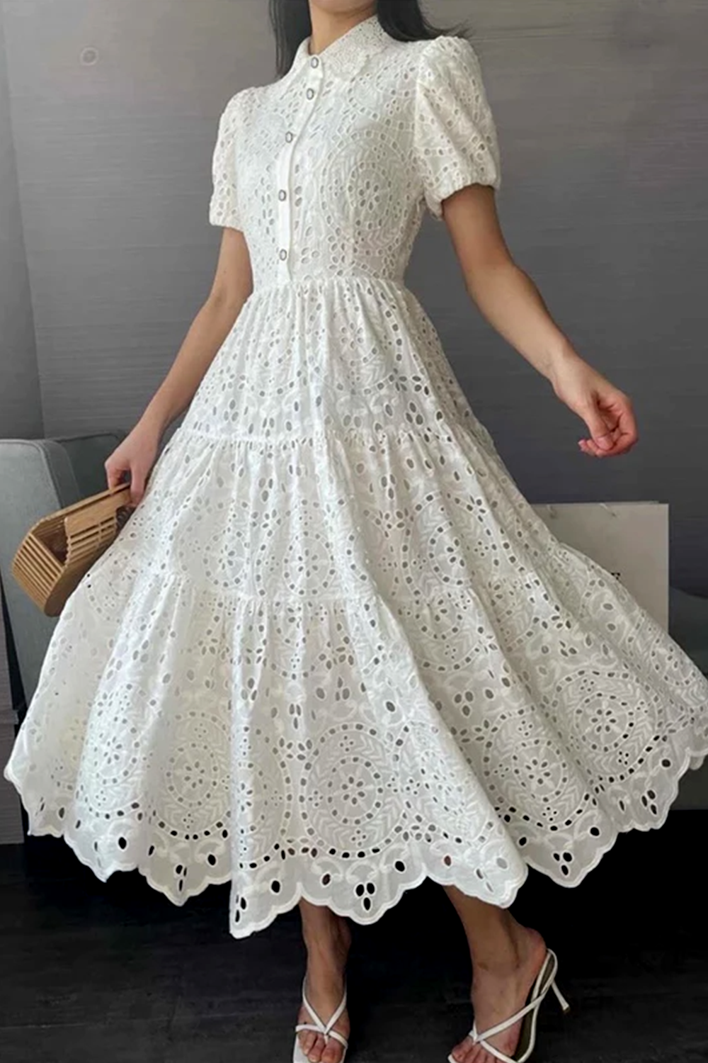 Slip into something more stylish with Bauble's Graceful Gabriella dress - it's vintage-inspired elegance meets modern summer vibe! The white design with embroidery and hollow out detailing ensures you'll be the belle of the beach ball in this midi boho masterpiece - no sweat!