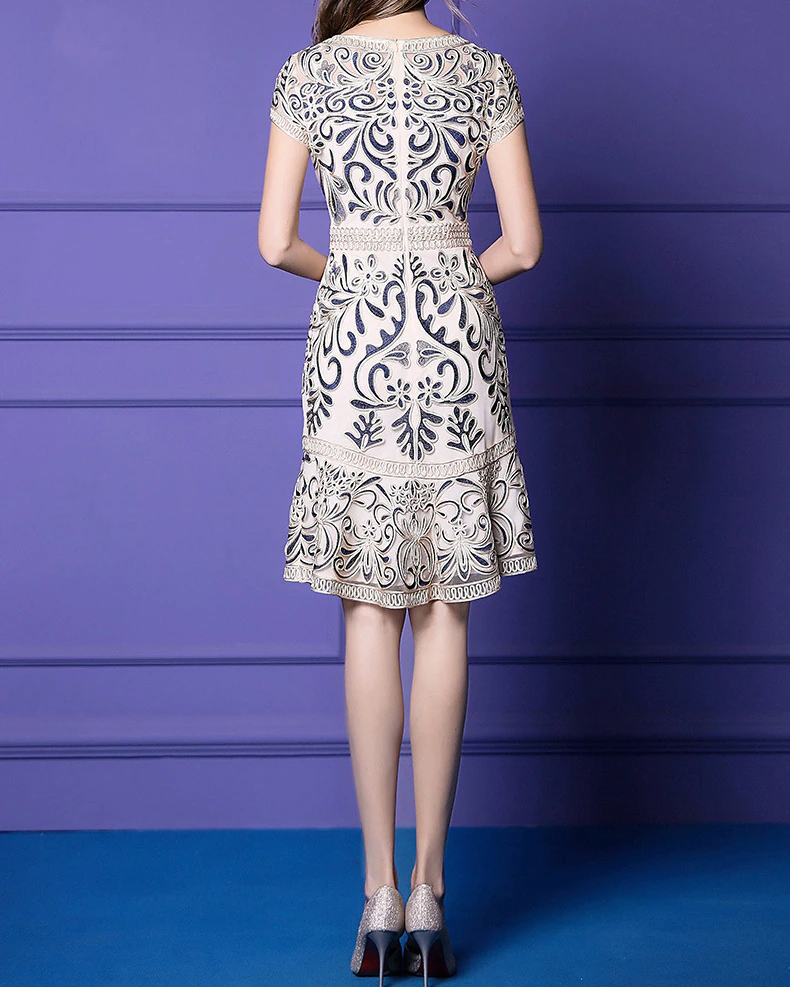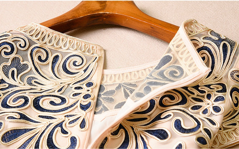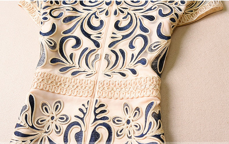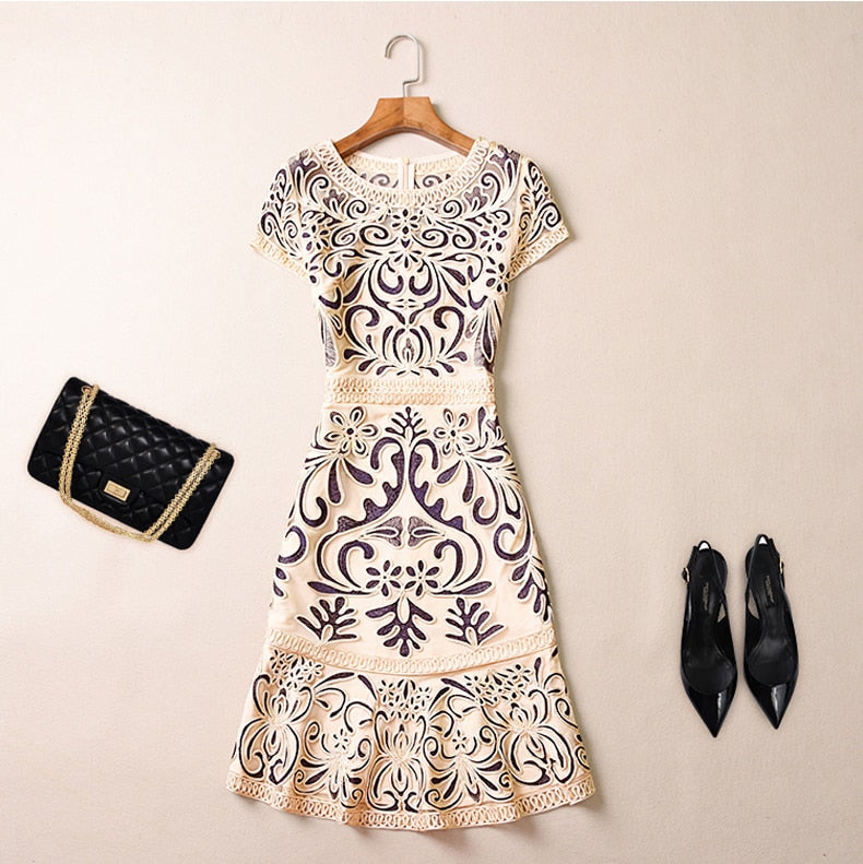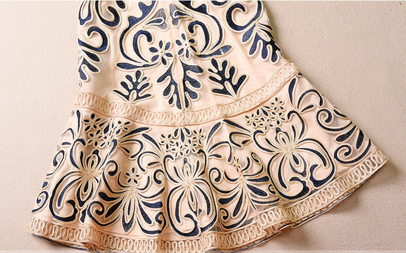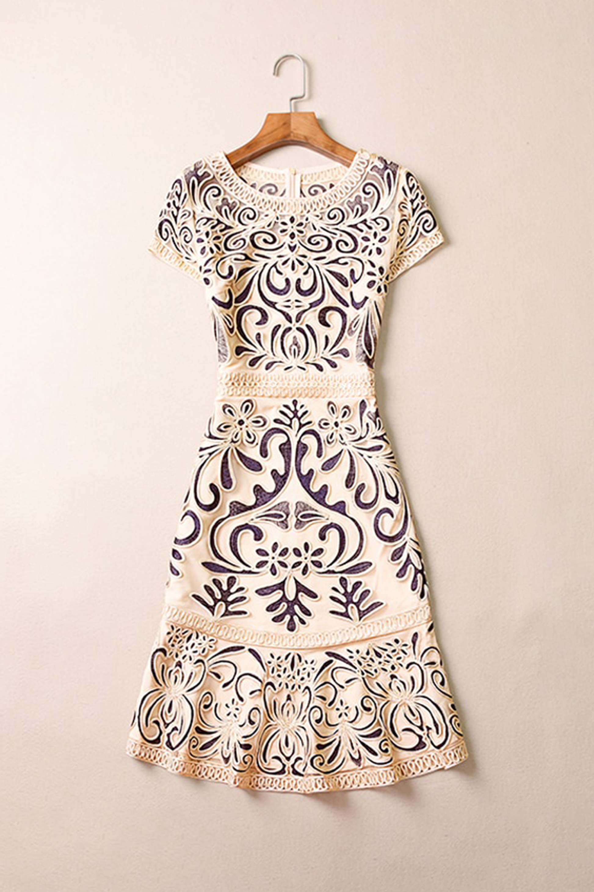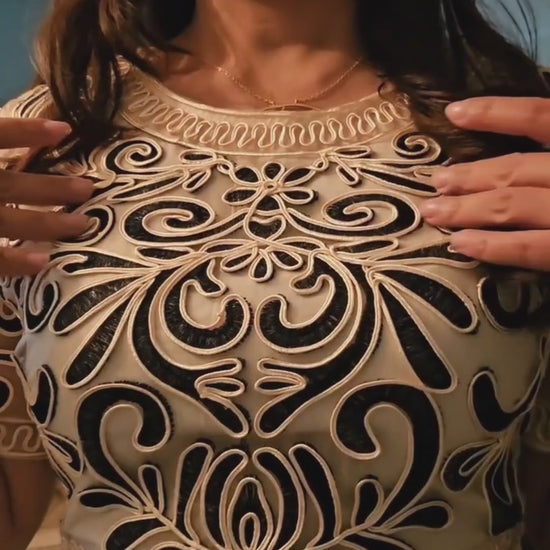 'Kavya' which means poem is definitely true to this dress. It is made from soft but structured jacquard-knit that's fitted through the body and fans out into a rippling skirt. It is embroidered with a floral motif that draws the eye to the waist. Wear it to a wedding with a swipe of coordinating lipstick.
