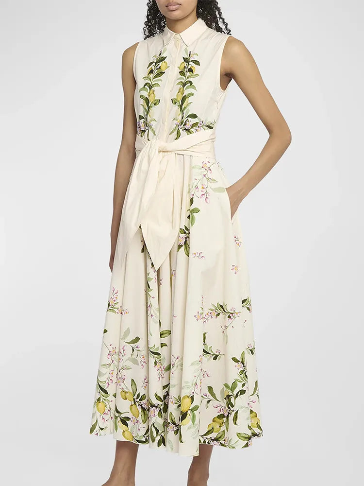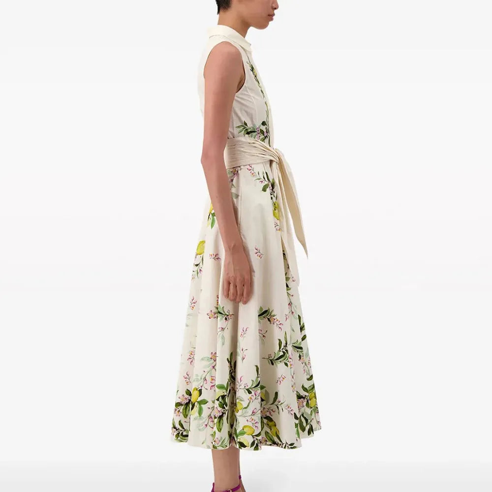 The vibrant green leafy decorating Karensa shirt dress is an instant mood-booster. It's made from crisp cotton and clinches at the waist before flaring out to a softly pleated skirt. Style yours with wrap-around sandals and gold jewelry.