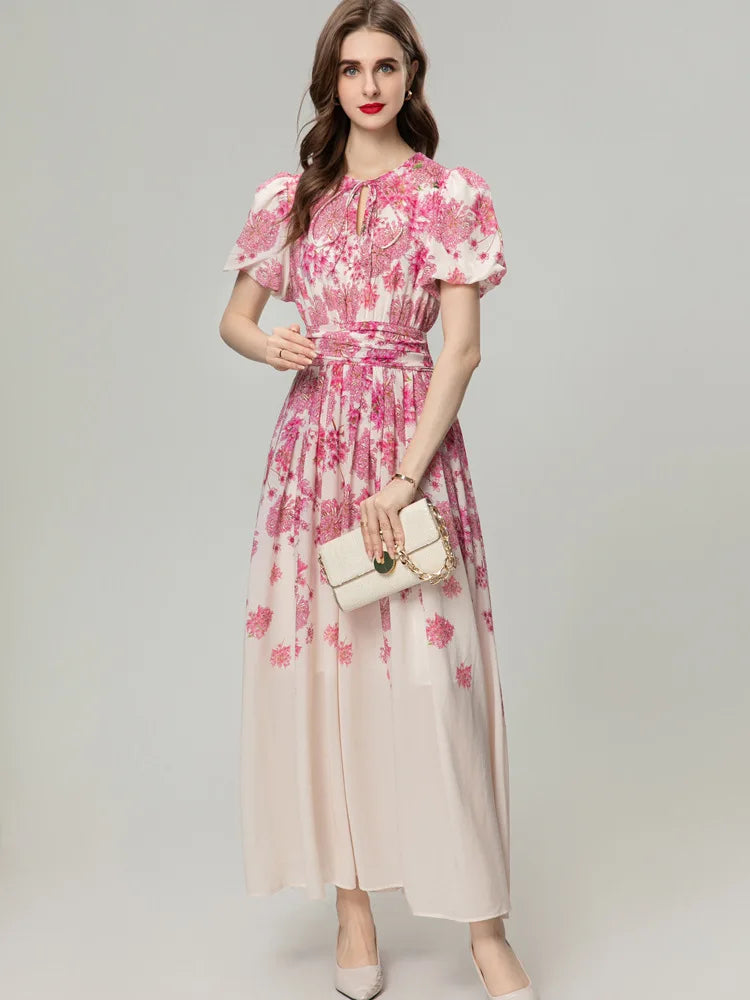 Sleeve Style: Regular | Dresses Length: Maxi | Silhouette: A-Line | Printing Methods: Digital printing | Waistline: Empire | Built-in Bra: NO | Style: Vintage | Weaving method: knitted | Logo/graphic design: embroidered | Technics: printed | Feature: anti-wrinkle | Collar: O-neck | Clothing Type: a-line gown | Season: Summer | Neckline: O-Neck | Fashion Element: Vintage | Sleeve Length(cm): Short | Pattern Type: Print | Fabric Weight: 160 grams |