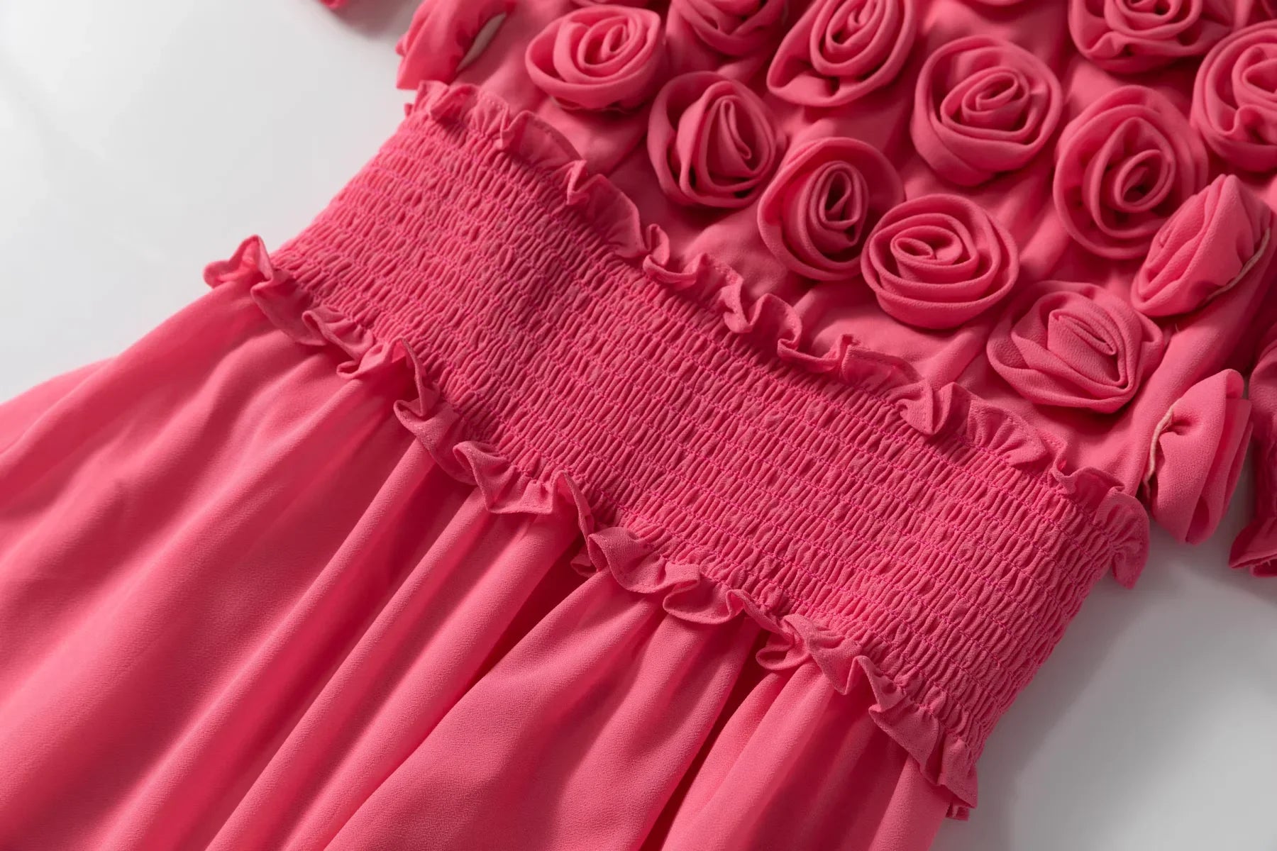 Defining easy, sophisticated elegance, this midi dress is a captivating piece for warm-weather gatherings. The A-line silhouette is beautifully realized in light, woven chiffon, ensuring a polished, anti-wrinkle drape. Framed by a classic O-neck and short sleeves, the dress uses delicate appliqués across the floral pattern to provide a unique, sophisticated texture to this simply styled piece.