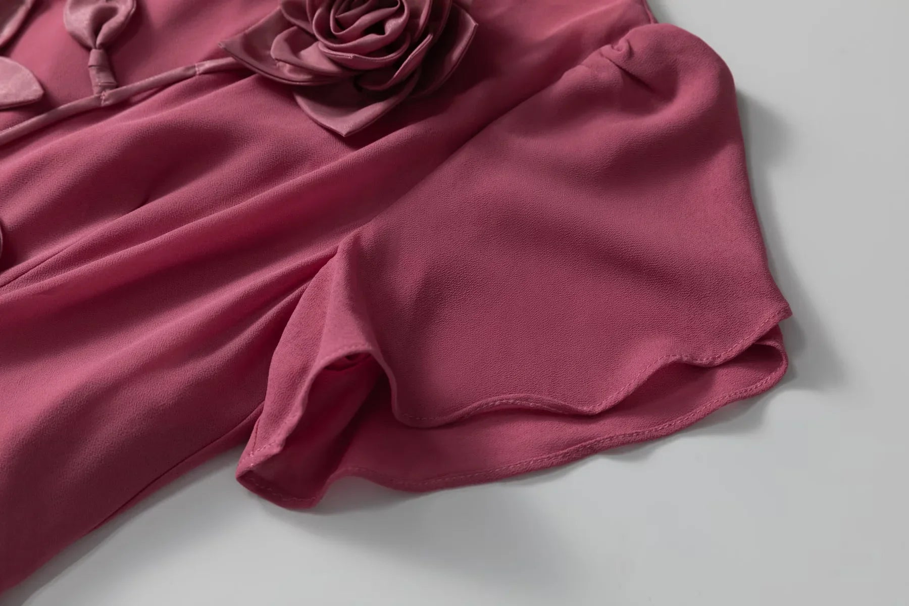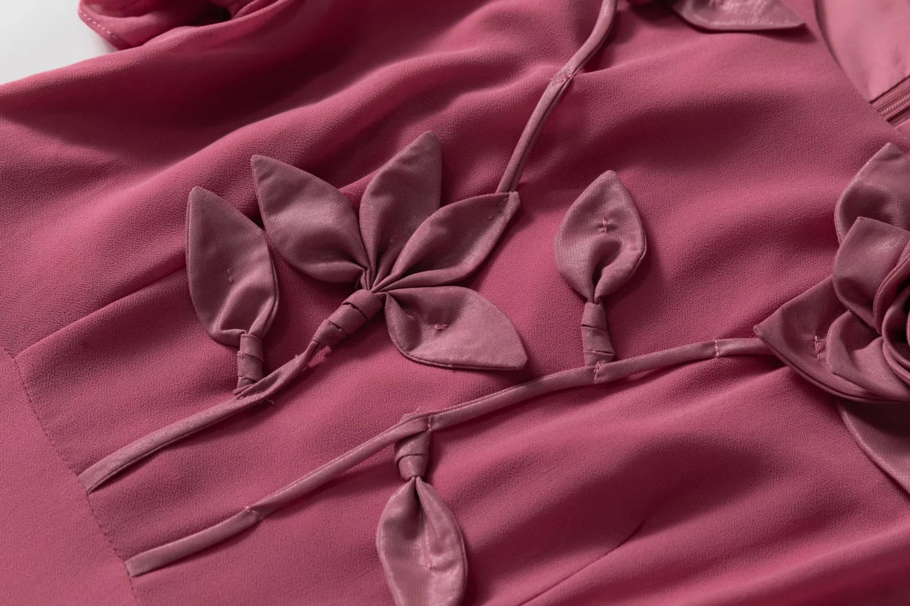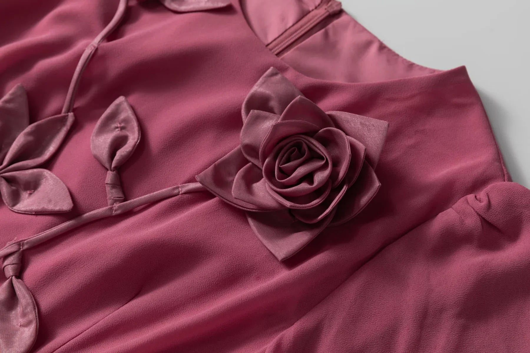 A polished, structured piece for summer occasions, this midi-length dress offers essential elegance and a flattering fit. The A-line silhouette is expertly cut from woven polyester, maintaining an anti-wrinkle finish. It features a simple O-neckline and neat short sleeves, while appliqués subtly enhance the floral pattern, creating a refined and beautiful focal point near the empire waistline.