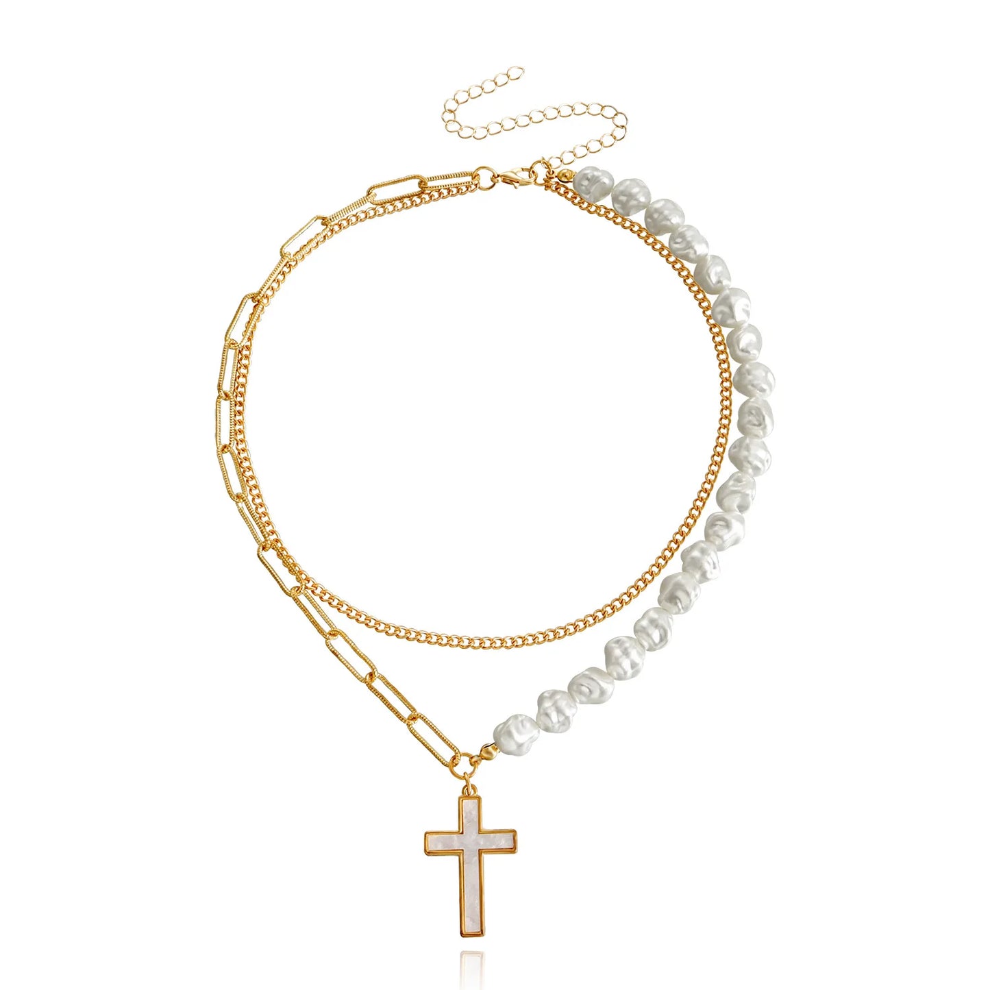 Bauble's 'Rasha' necklace collection is made from a combination of gold-plated chain links and faux pearls for a beautiful, two-tone effect. It's centered with an array of dainty pendants - select one representative of yourself or a loved one.