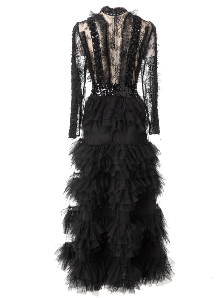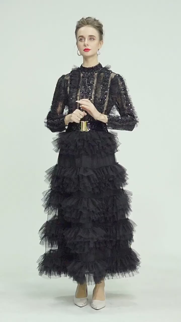 Sleeve Style: Regular | Dresses Length: Maxi Standard | Silhouette: A-Line | Printing Methods: Digital printing | Waistline: Empire | Built-in Bra: NO | Style: Party | Weaving method: knitted | Logo/graphic design: embroidered | Technics: Beaded | Feature: anti-wrinkle, TRANSLUCENT | Collar: Stand Collar | Clothing Type: sheath gown | Season: Spring | Neckline: stand | Fashion Element: Vintage | Sleeve Length(cm): Full | Decoration: Beading, Ruffles, Sashes | Pattern Type: Others |