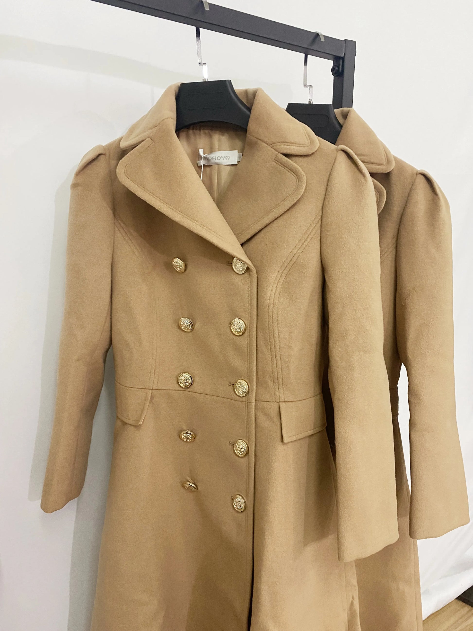 Bauble Buy’s Tessa Coat brings a refined edge to classic outerwear. Designed with a structured silhouette, it features a double-breasted front adorned with gleaming gold buttons that lend a touch of regality. The flared hemline softens its tailored shape, striking the perfect balance between strength and femininity. In timeless black, the Tessa Coat transitions seamlessly from day to night, making it a wardrobe staple for polished sophistication.