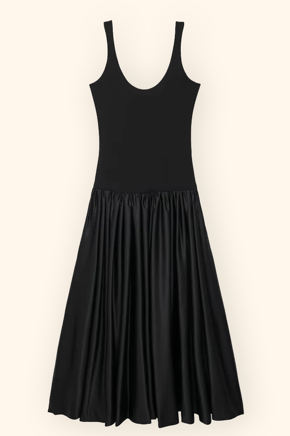 There's a sense of ease to Bauble's " Vespera" dress that makes it feel so chic. It has a plush soft fabric bodice with a basque waist and a silk pleated skirt that floats elegantly from the hips.